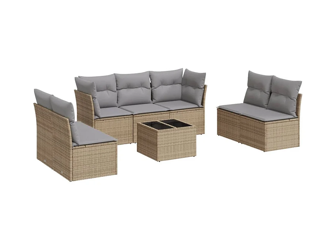 7 pcs conjunto de sofás p/ jardim com almofadões vime PE bege