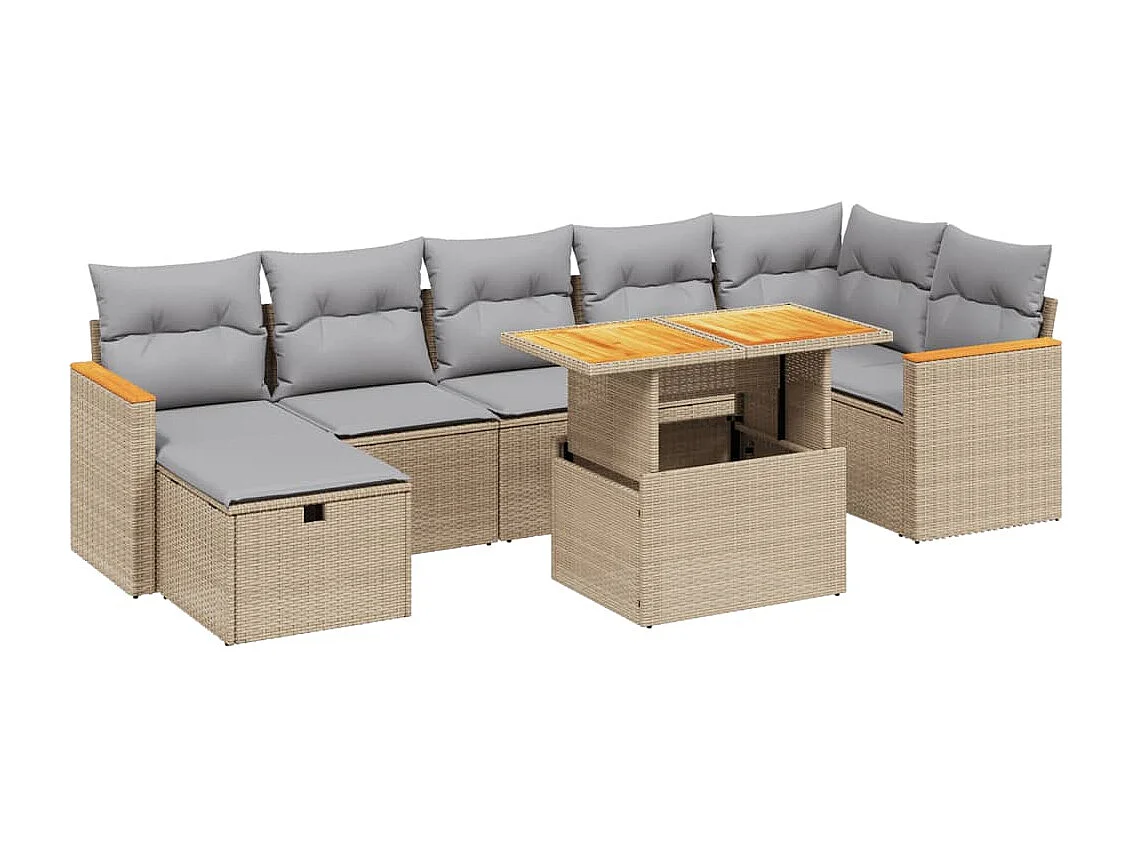 8 peças conjunto de sofás para jardim com almofadões vime PE bege
