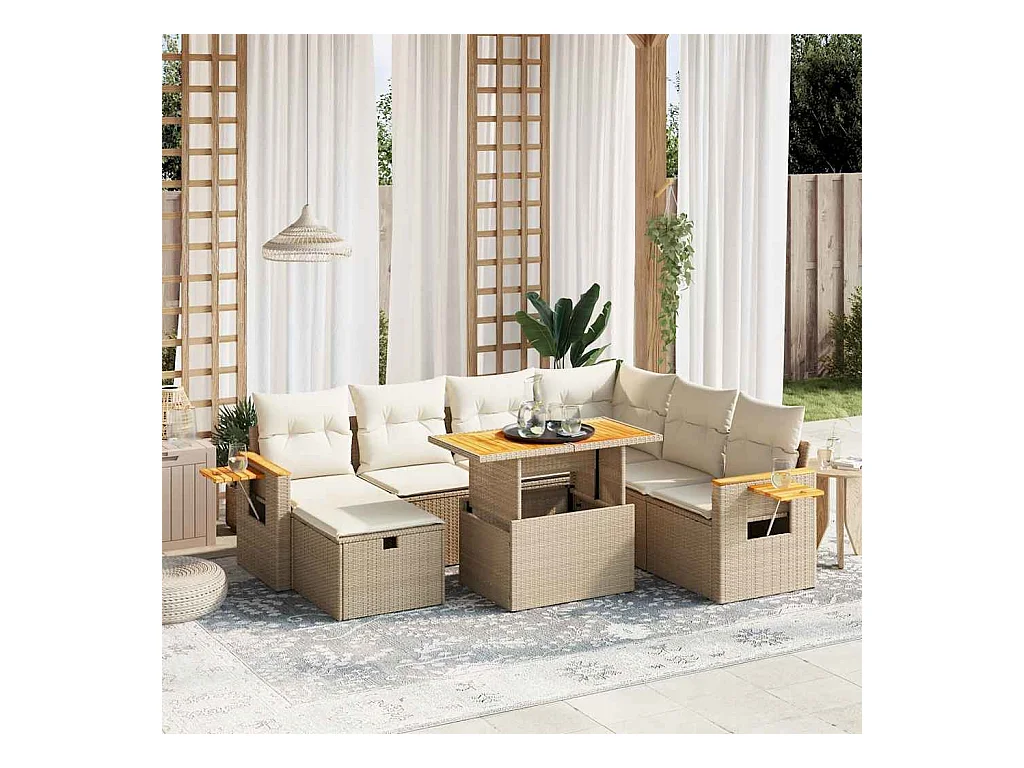 8 peças conjunto de sofás para jardim com almofadões vime PE bege