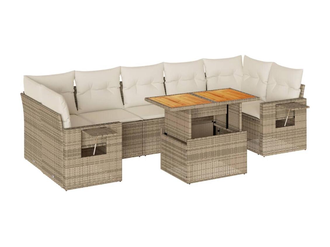 8 peças conjunto de sofás para jardim com almofadões vime PE bege