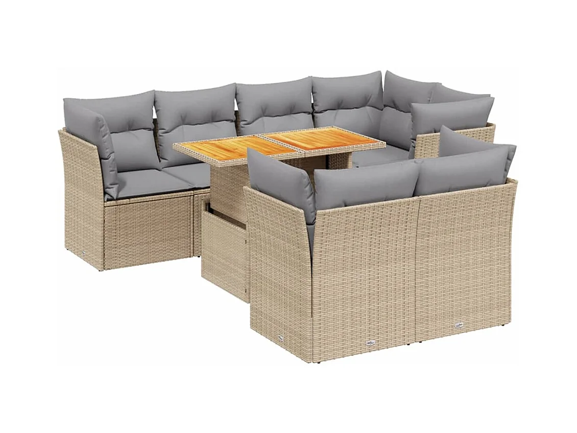 8 peças conjunto de sofás para jardim com almofadões vime PE bege