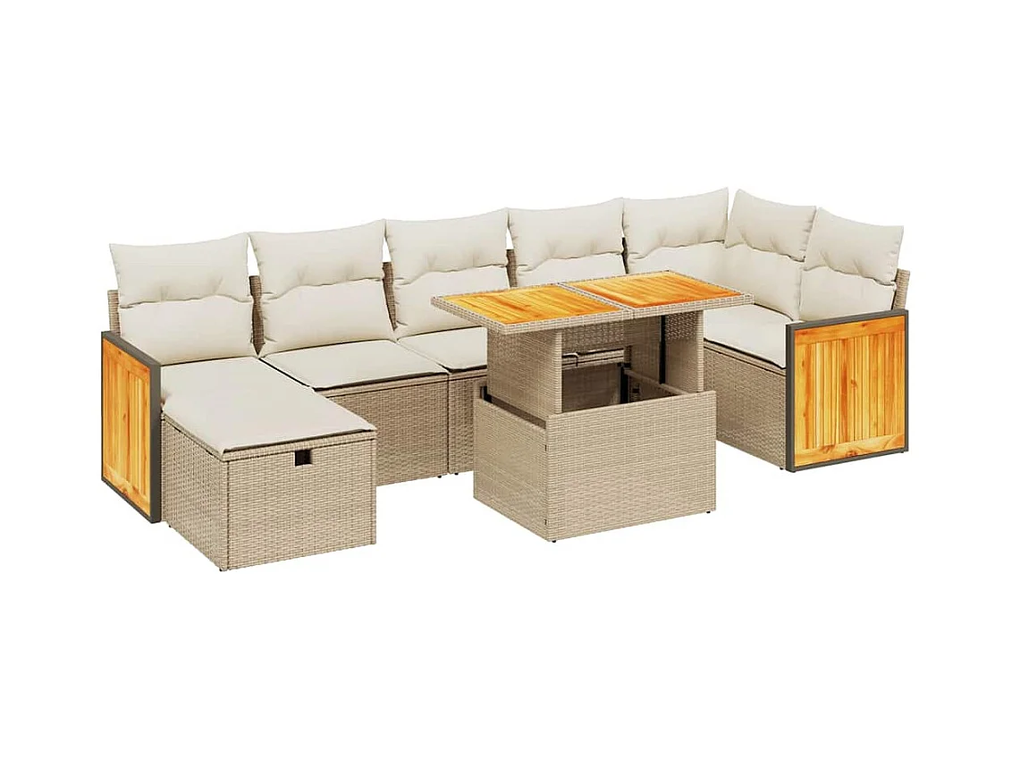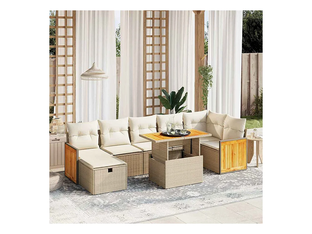 8 peças conjunto de sofás para jardim com almofadões vime PE bege