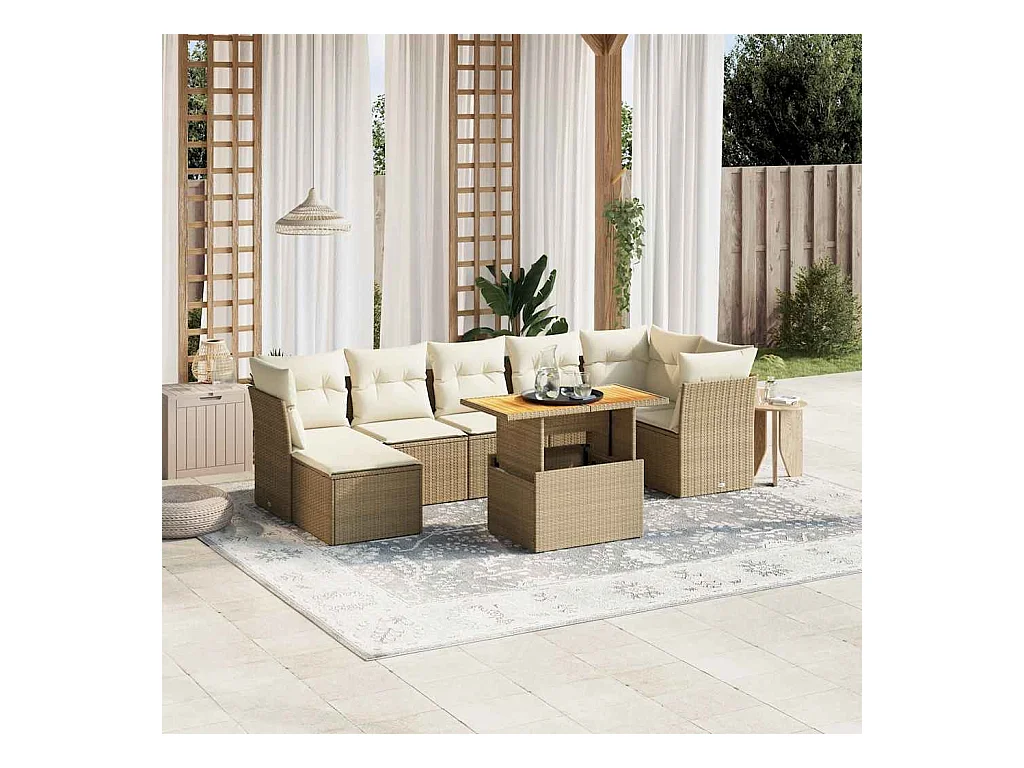8 peças conjunto de sofás para jardim com almofadões vime PE bege