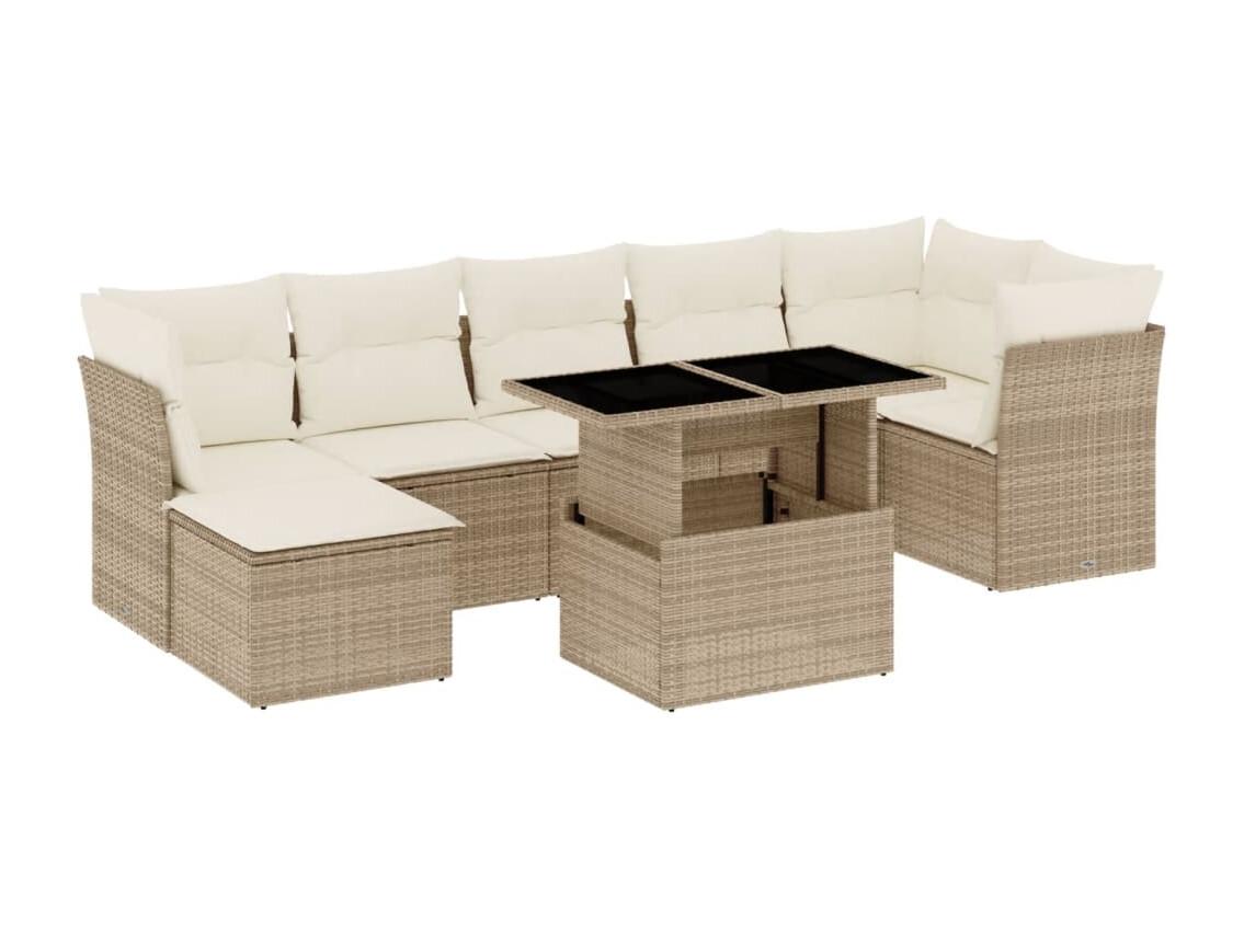 8 peças conjunto de sofás para jardim com almofadões vime PE bege