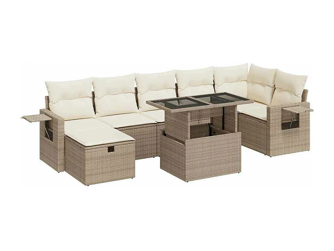 8 peças conjunto de sofás para jardim com almofadões vime PE bege