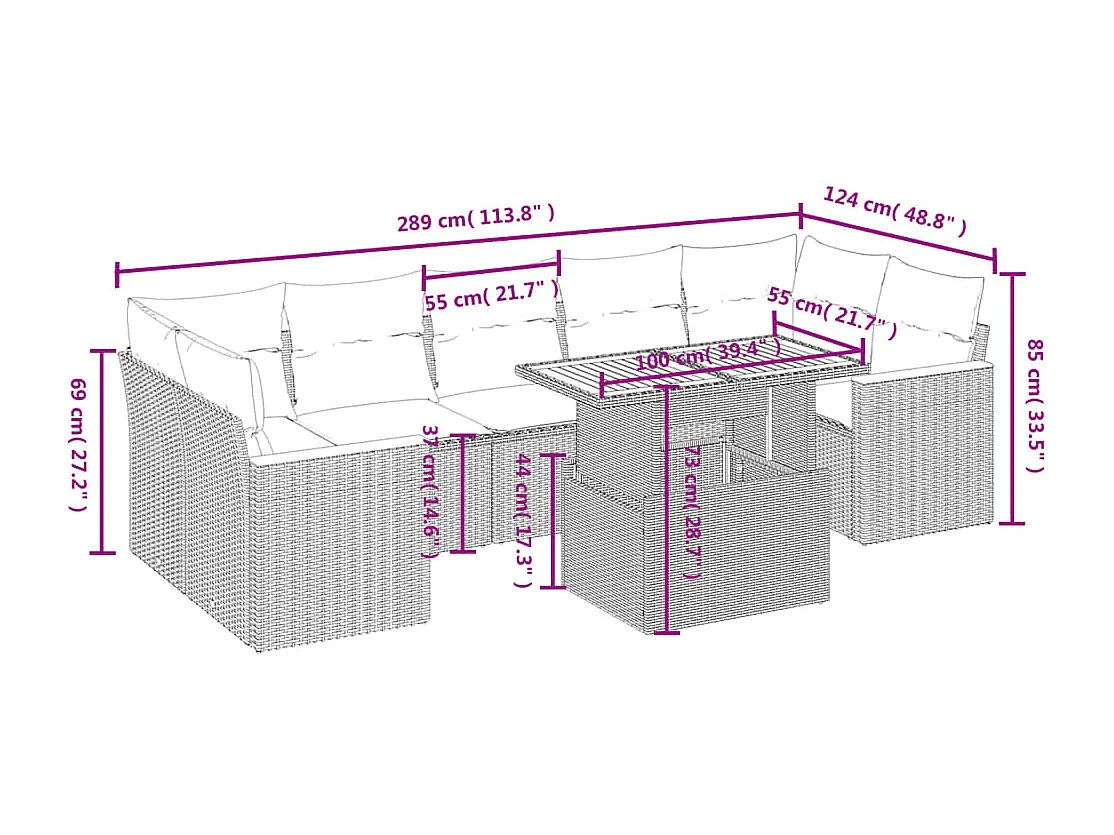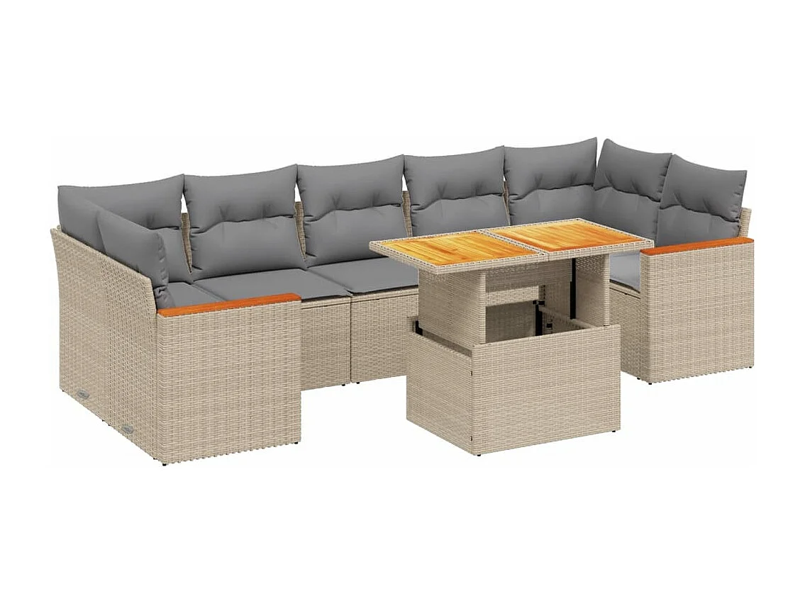8 peças conjunto de sofás para jardim com almofadões vime PE bege
