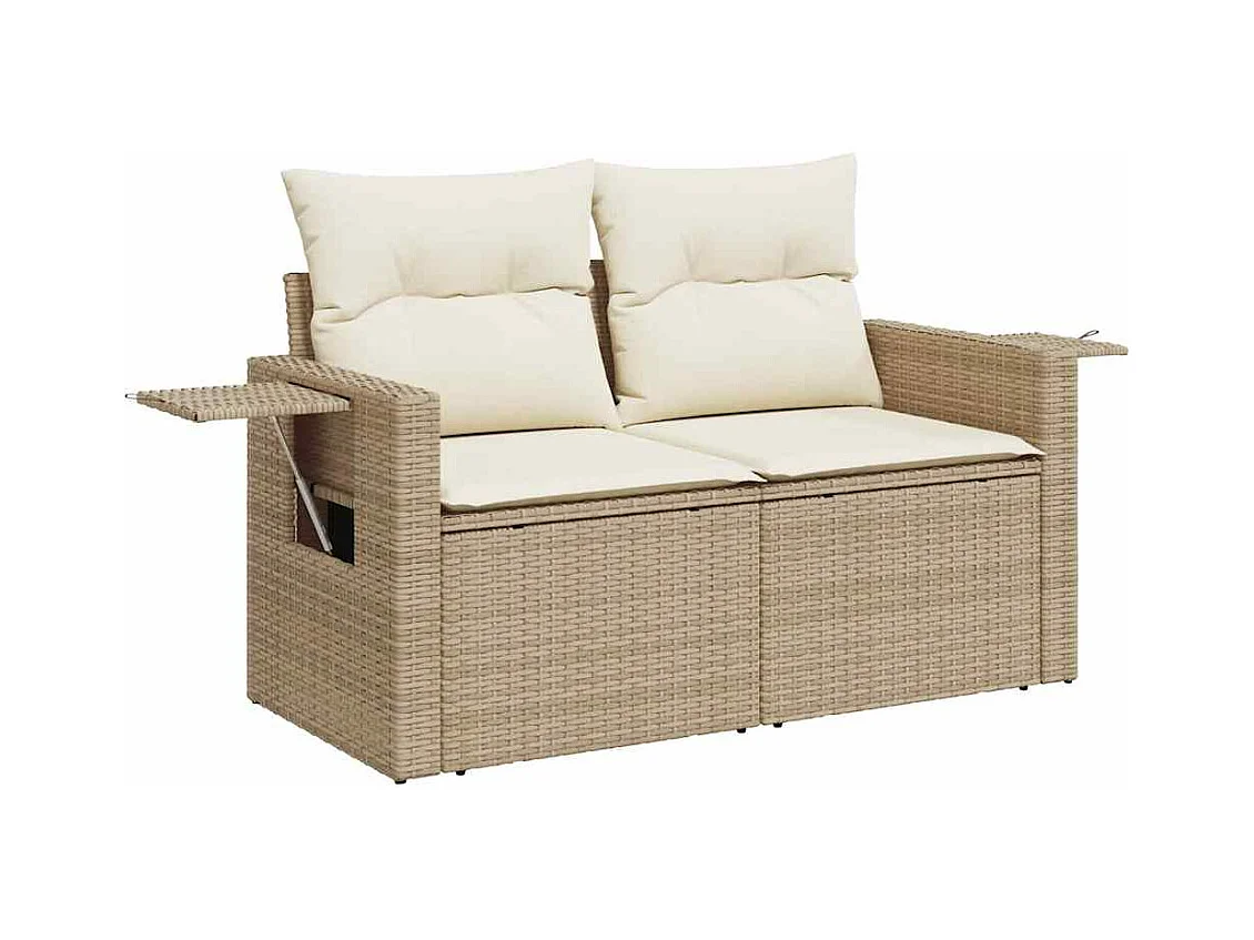 8 peças conjunto de sofás para jardim com almofadões vime PE bege