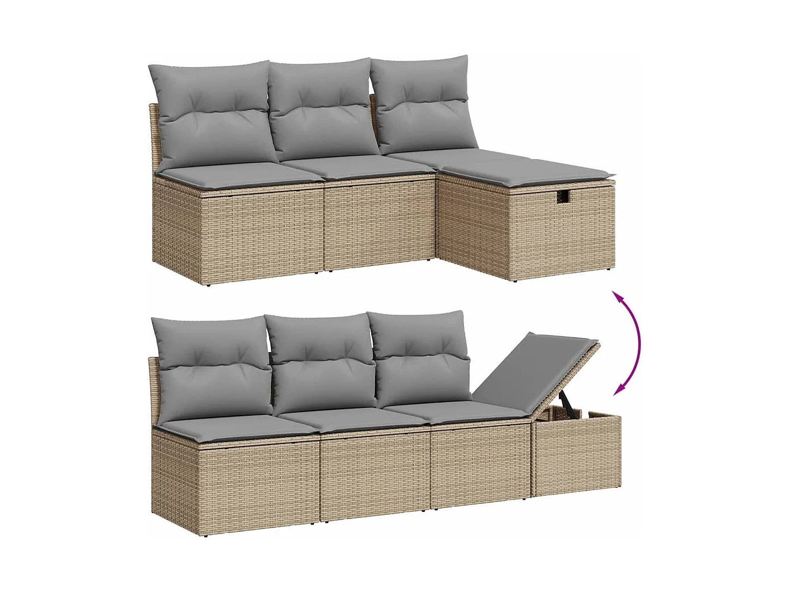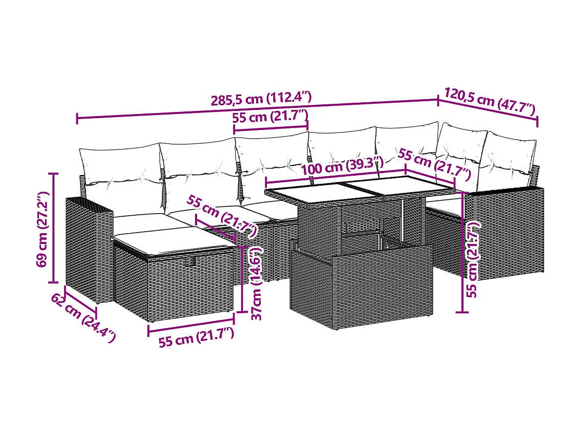 7 peças conjunto de sofás para jardim com almofadões vime PE bege