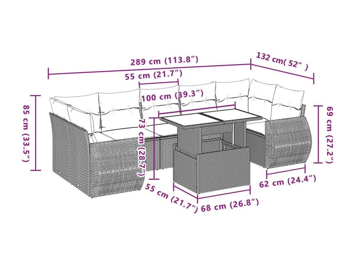 8 peças conjunto de sofás para jardim com almofadões vime PE bege