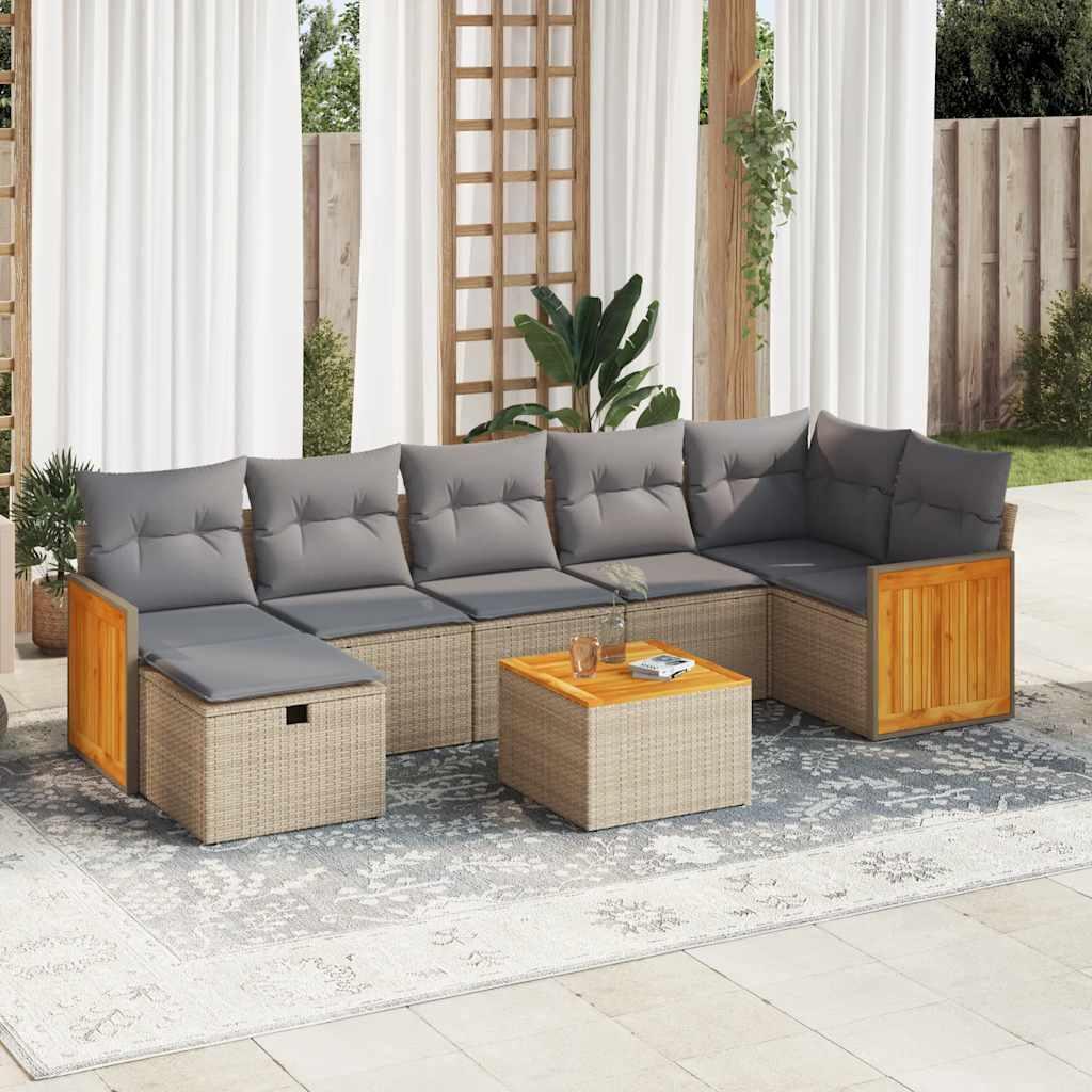 8 peças conjunto de sofás para jardim com almofadões vime PE bege