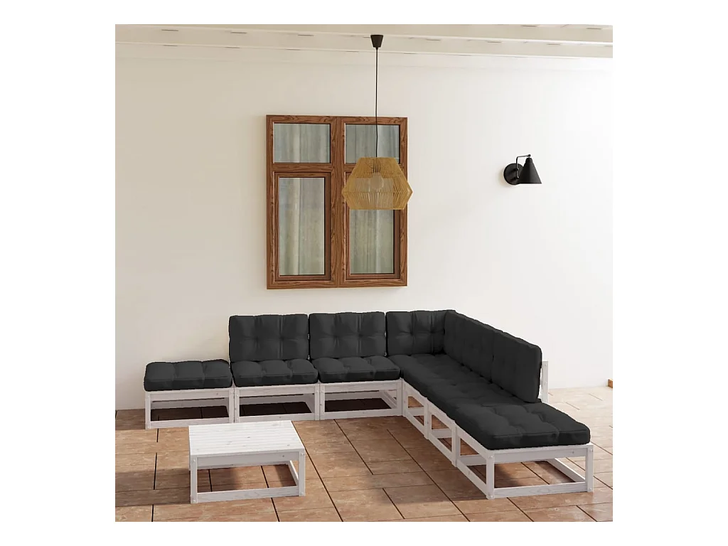 8 peças conjunto lounge de jardim com almofadões pinho maciço