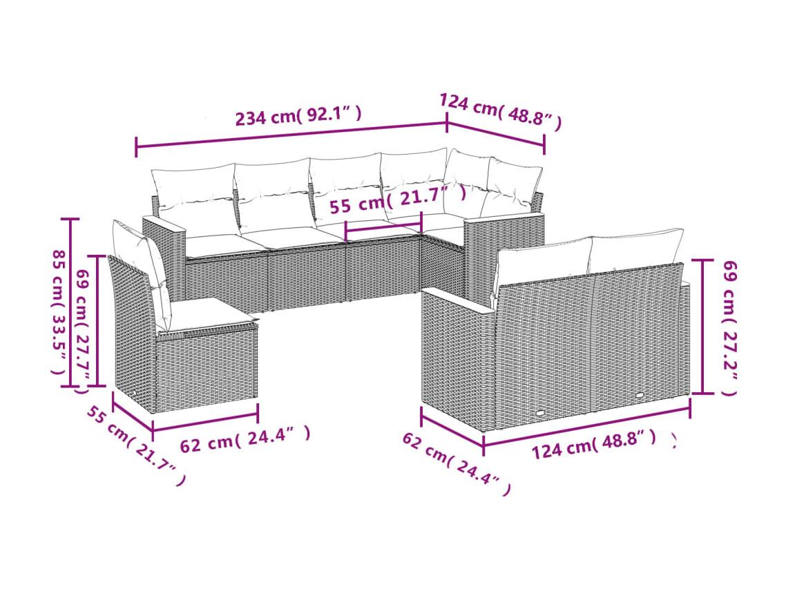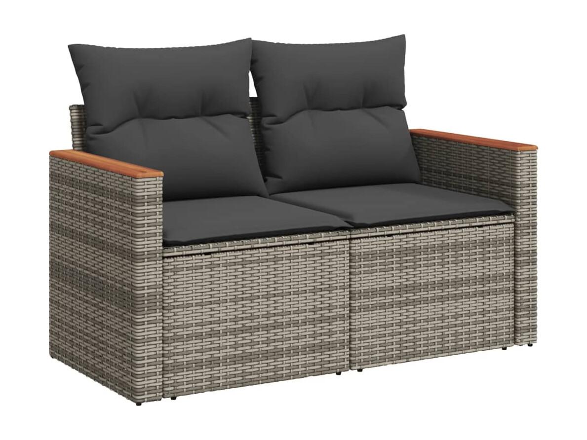 8 peças conjunto sofás de jardim c/ almofadões vime PE cinzento