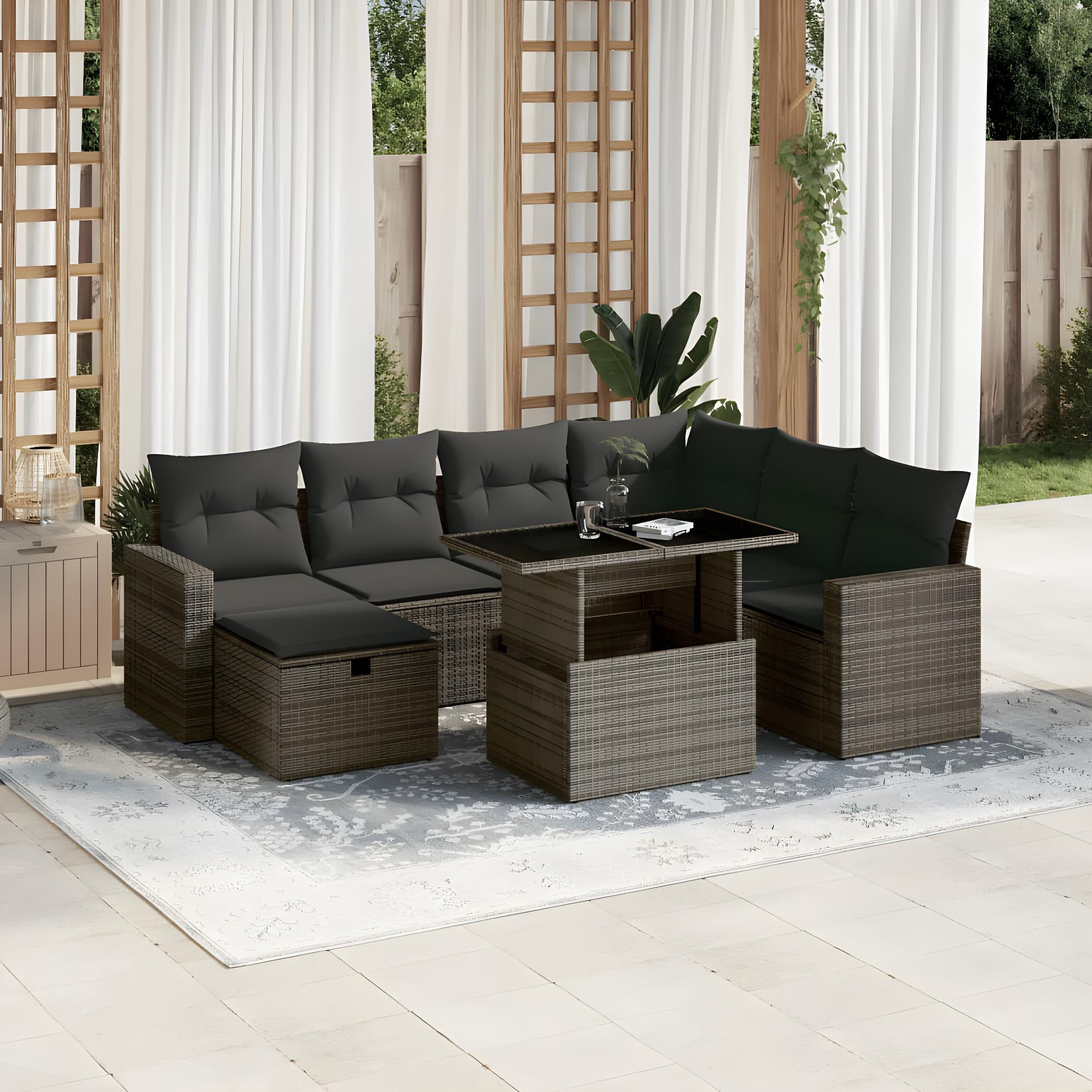 8 peças conjunto sofás de jardim c/ almofadões vime PE cinzento
