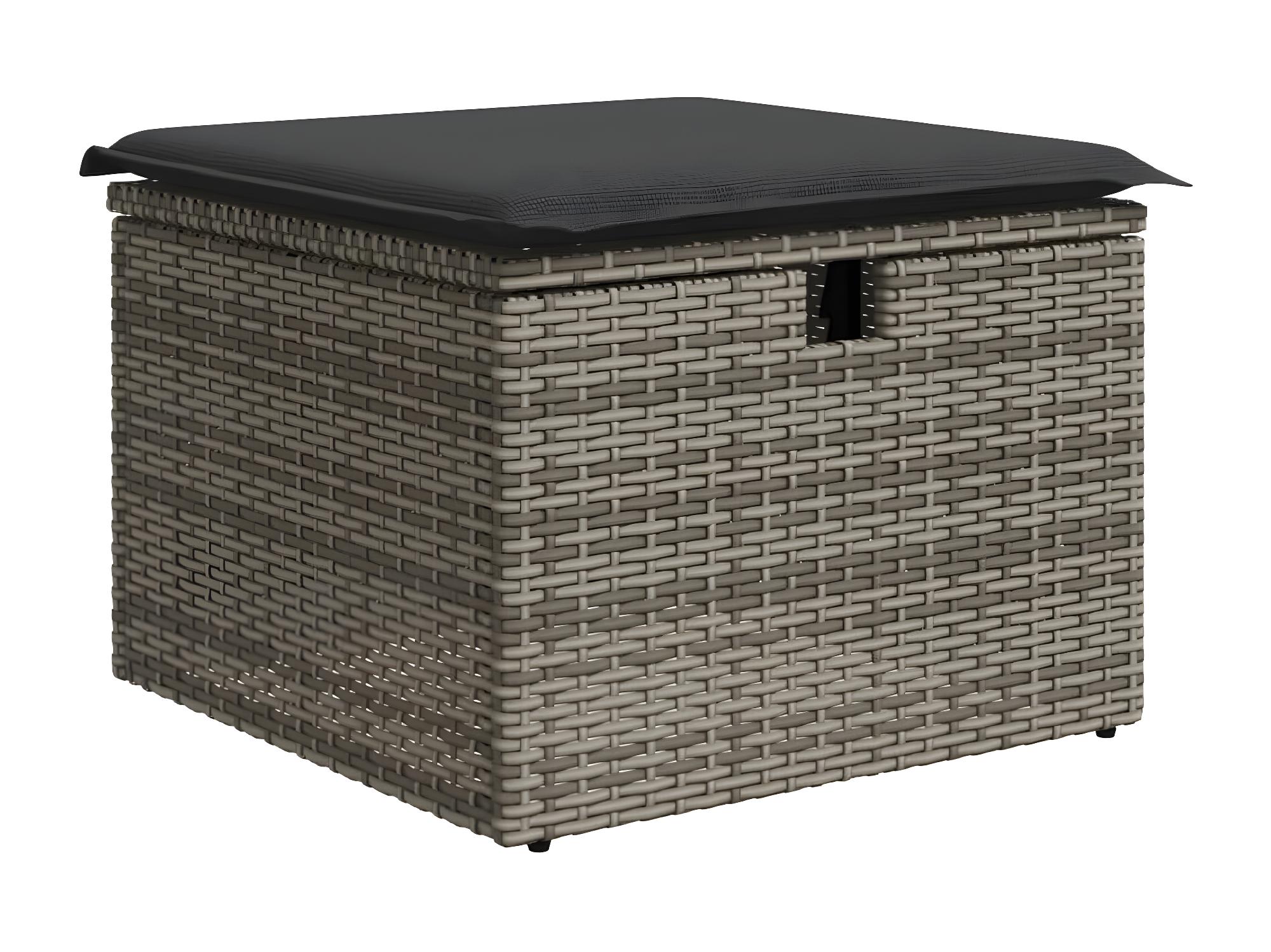 7 pcs conjunto sofás p/ jardim c/ almofadões vime PE cinzento