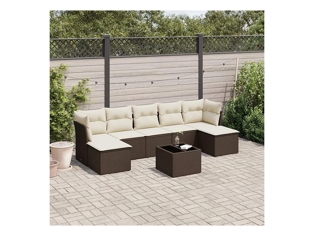 8 peças conjunto sofás de jardim com almofadões vime PE castanho