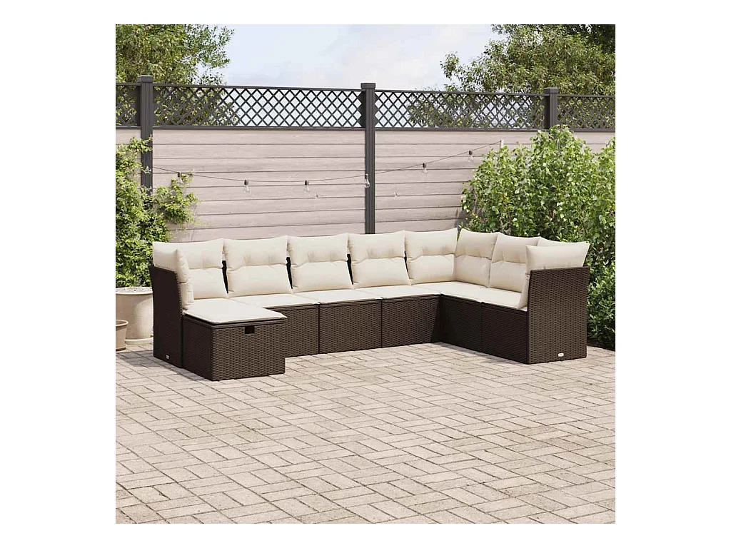 8 peças conjunto sofás de jardim com almofadões vime PE castanho