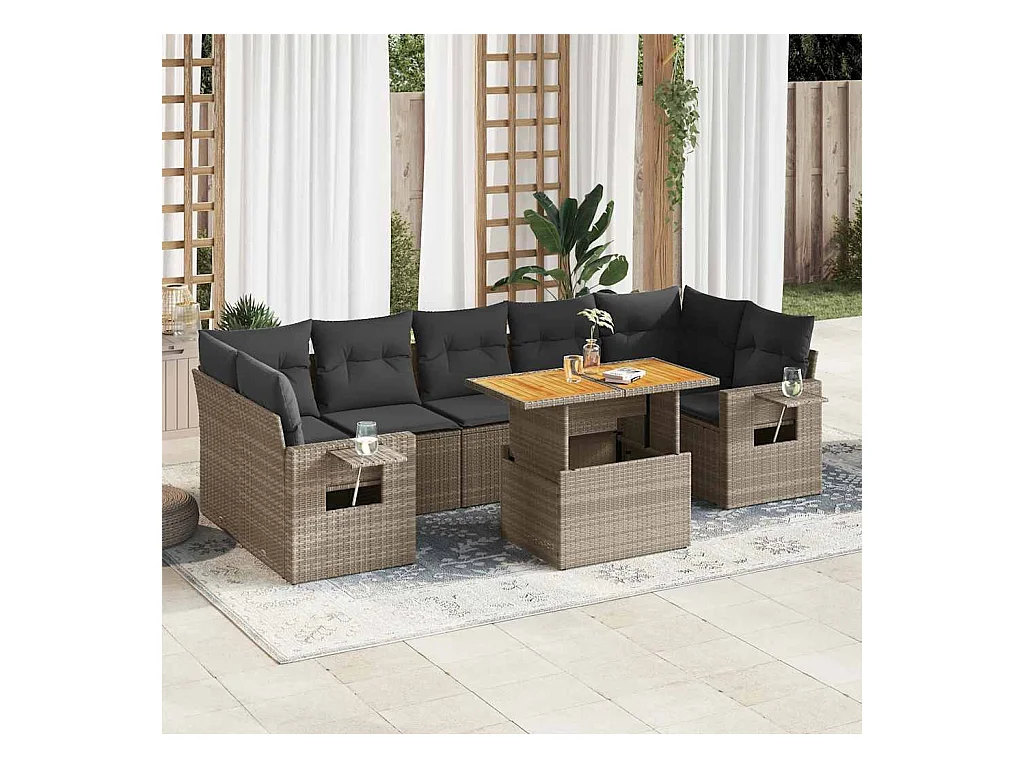 7 peças conjunto sofás jardim almofadões vime PE/acácia cinzento