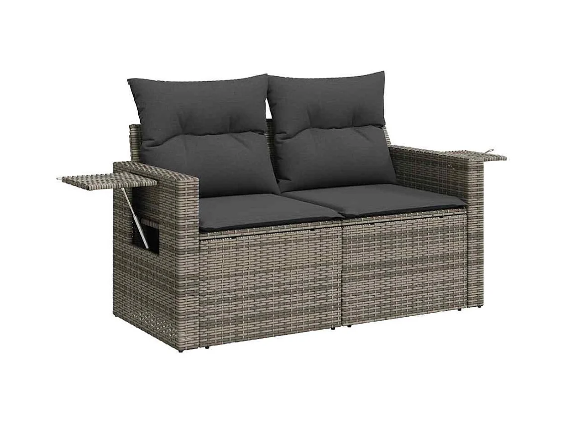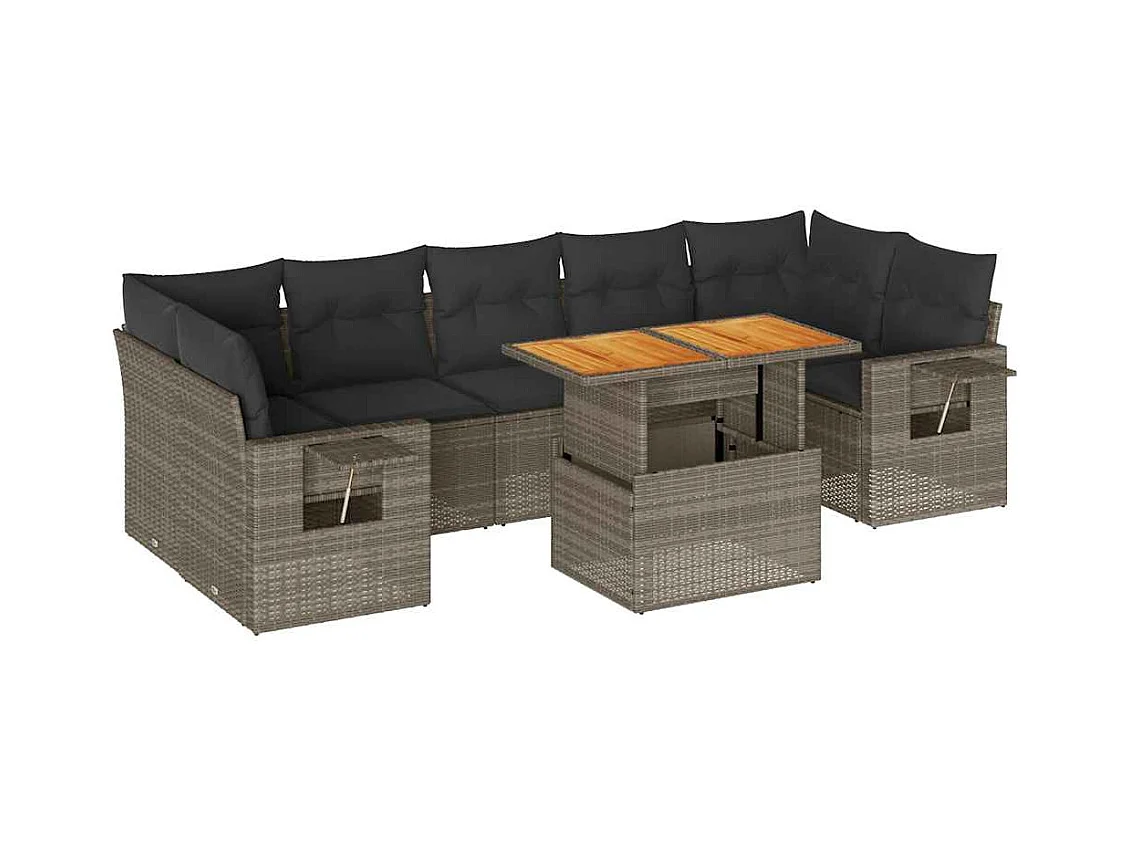 8 peças conjunto sofás de jardim com almofadões vime PE cinzento