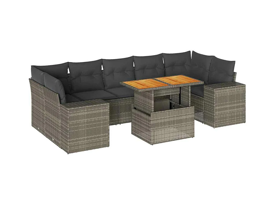 8 peças conjunto sofás de jardim com almofadões vime PE cinzento