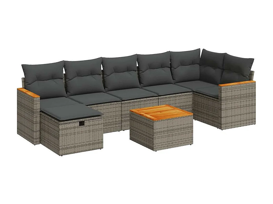 8 peças conjunto sofás de jardim com almofadões vime PE cinzento