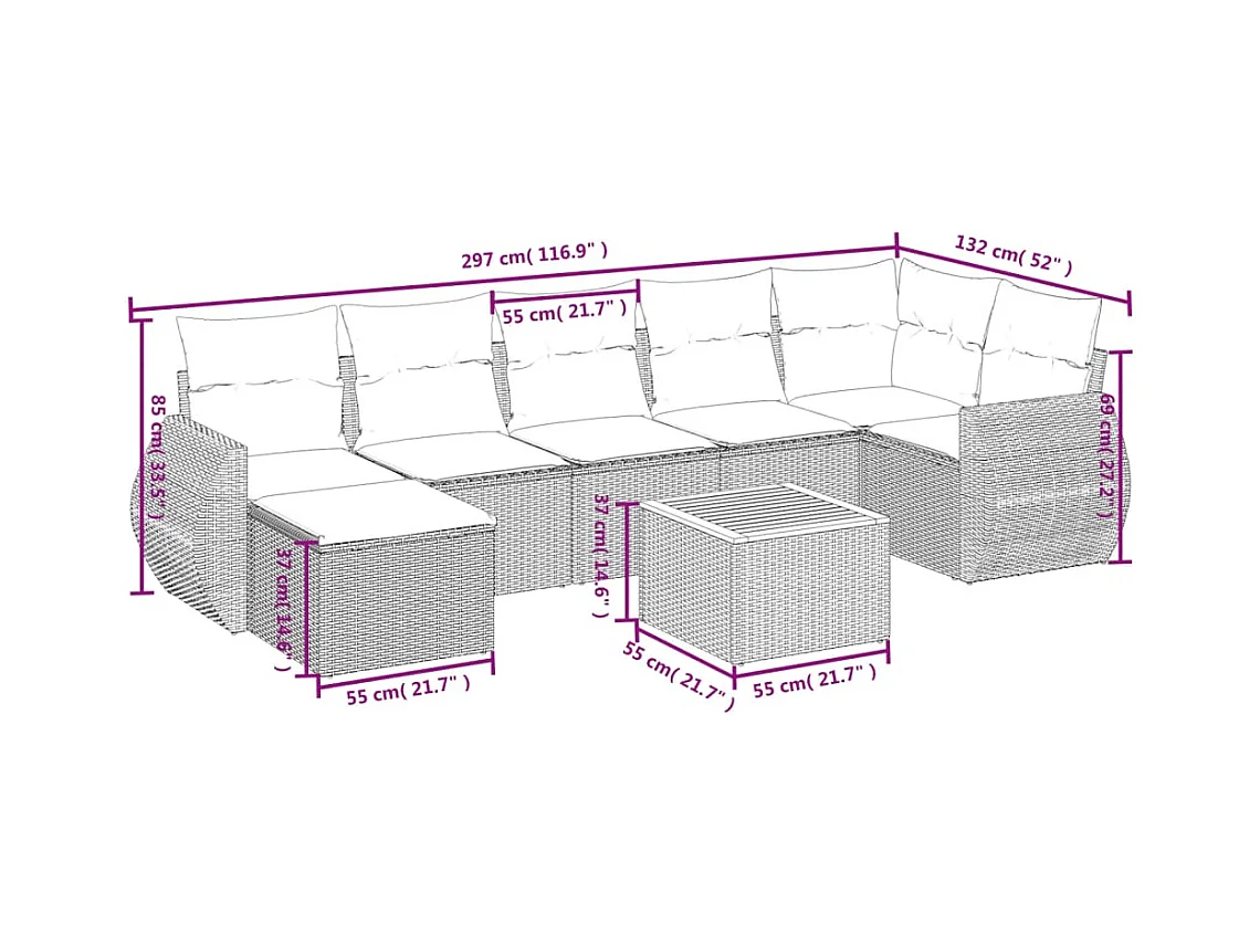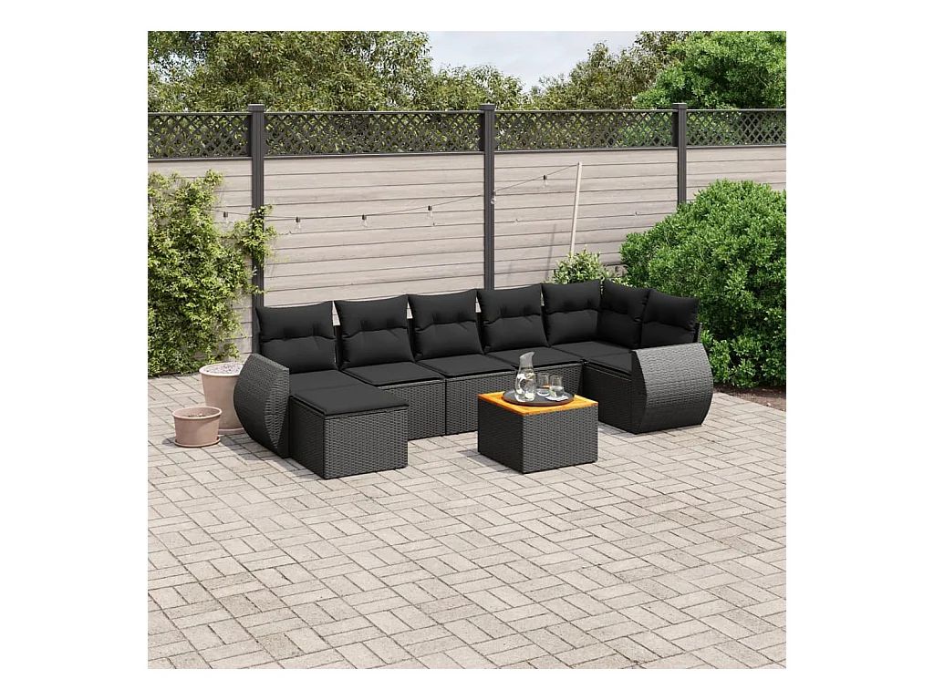 8 peças conjunto sofás de jardim com almofadões vime PE preto