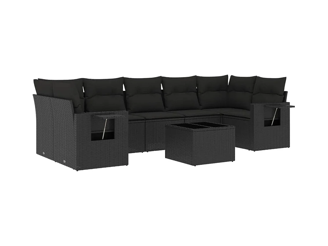 8 peças conjunto sofás de jardim com almofadões vime PE preto