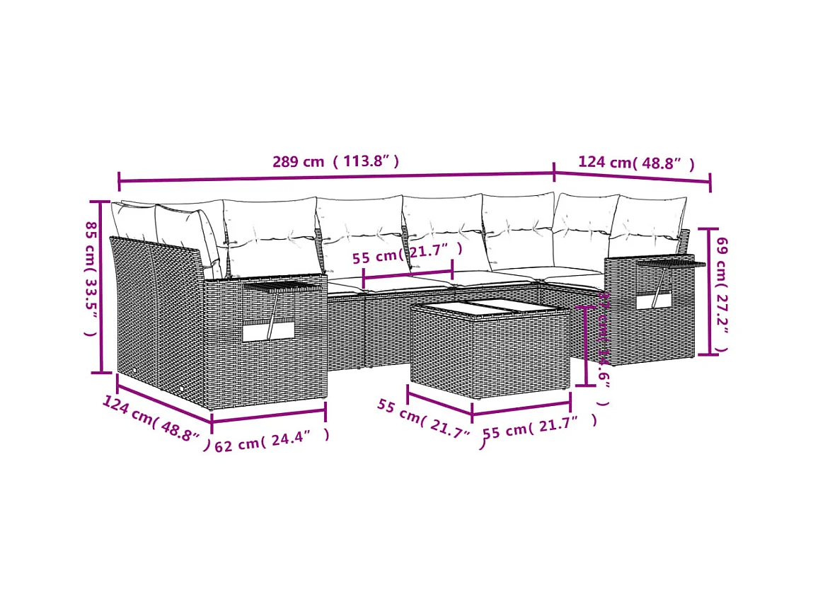 7 pcs conjunto de sofás p/ jardim c/ almofadões vime PE preto PT226256