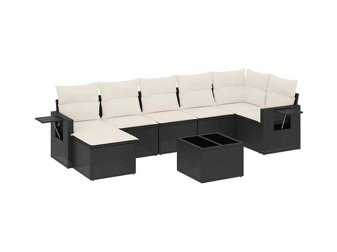 8 peças conjunto sofás de jardim com almofadões vime PE preto