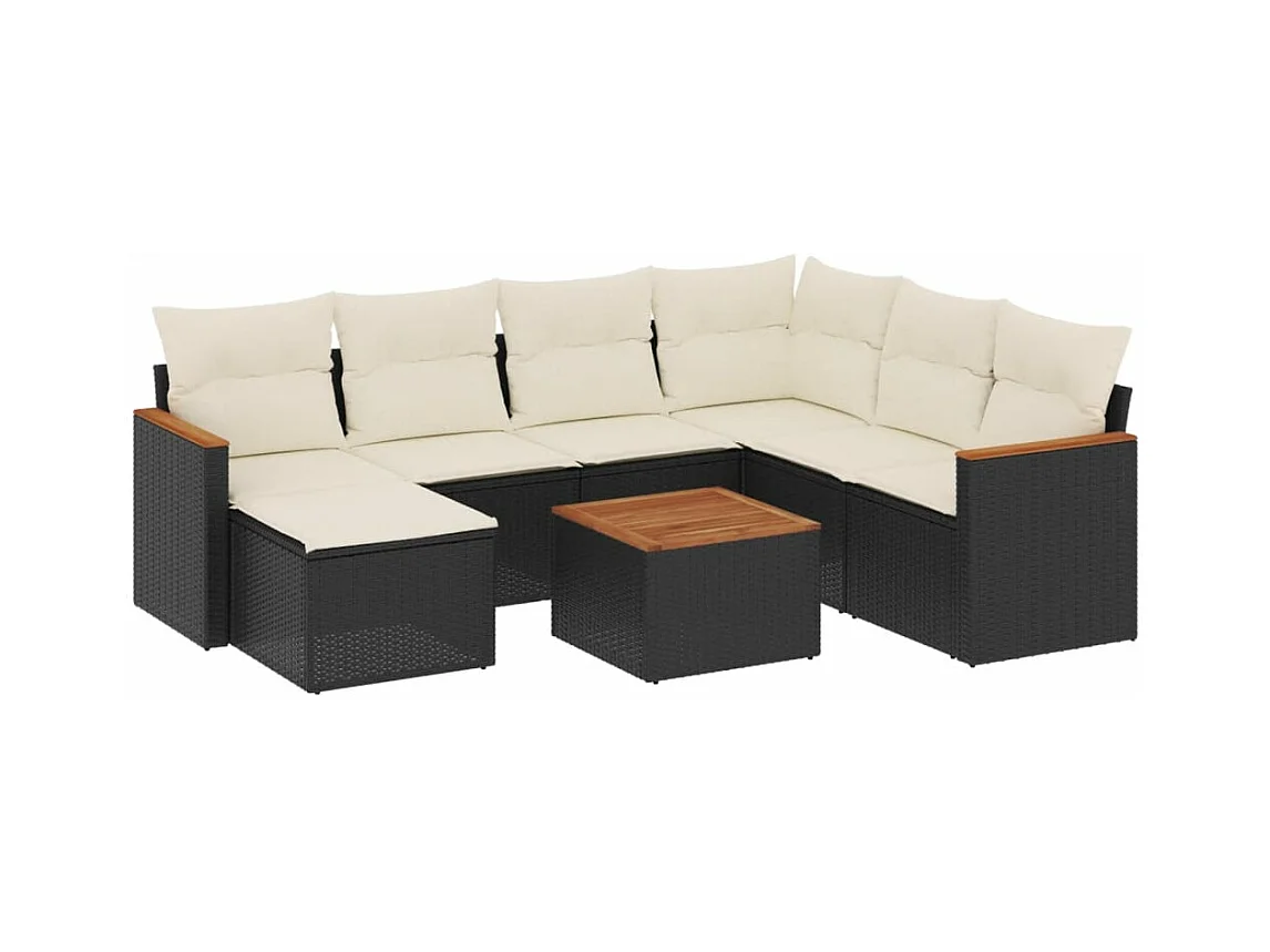 8 peças conjunto sofás de jardim com almofadões vime PE preto