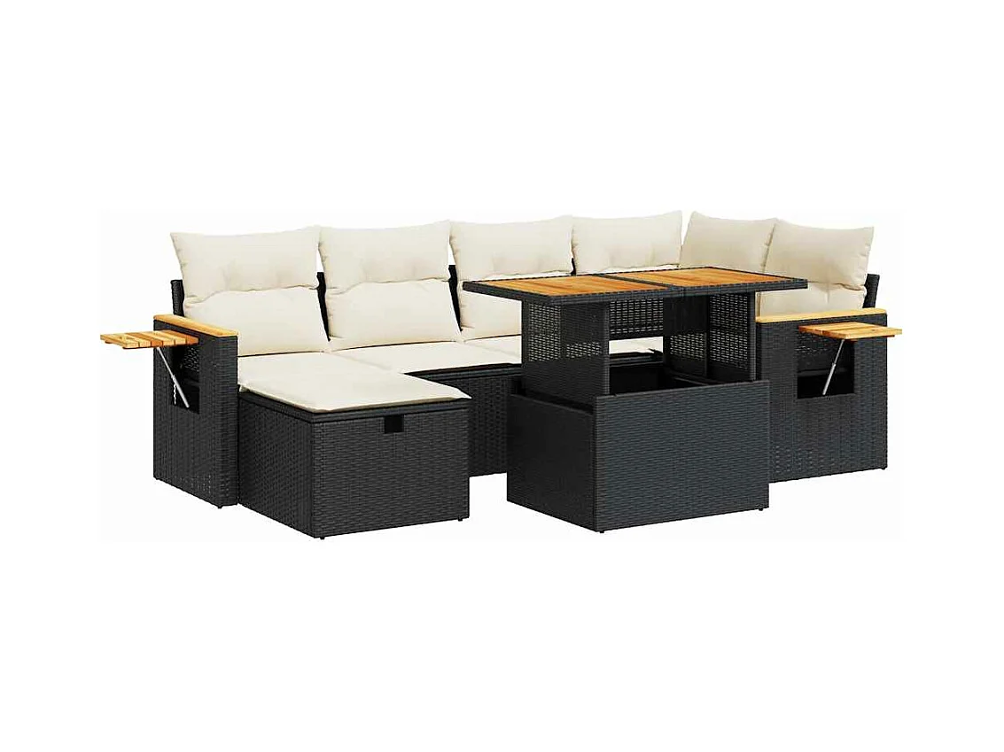 7 peças conjunto de sofás para jardim com almofadões vime PE preto