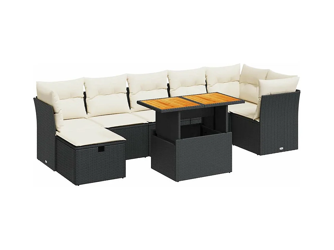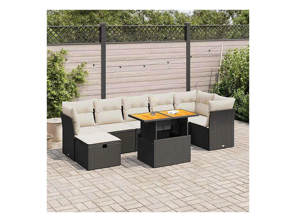 8 peças conjunto sofás jardim com almofadões vime PE/acácia preto