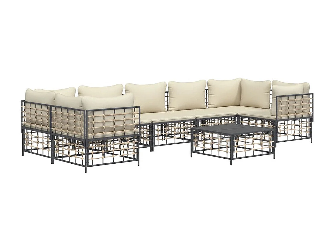 8 peças de móveis de jardim com almofadas de resina tecida antracite