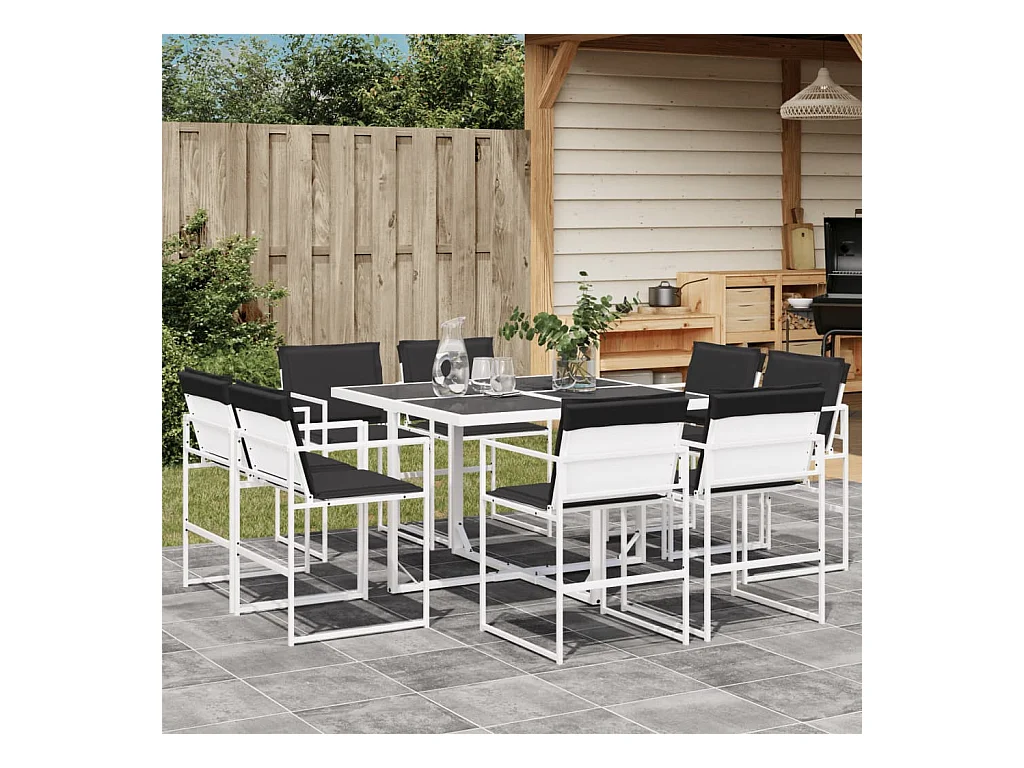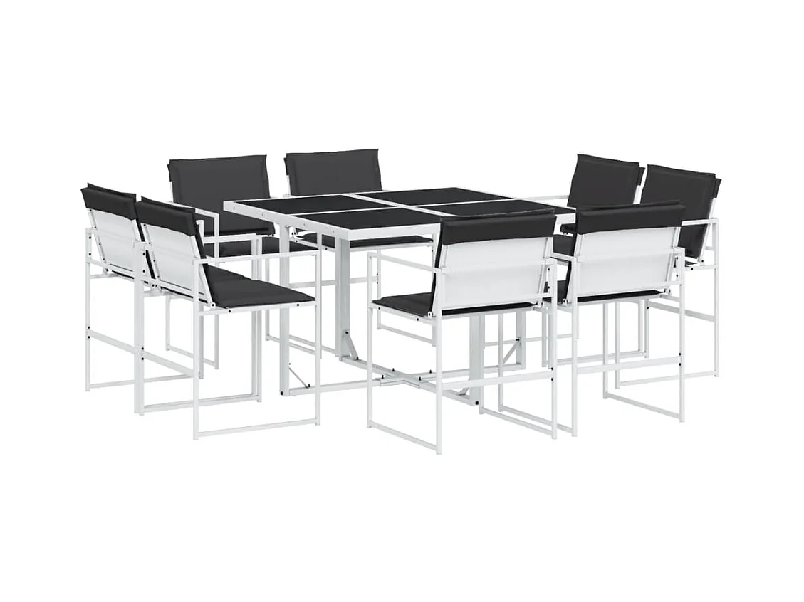 9 pcs conj. de jantar p/ jardim c/ almofadões textilene branco PT192617