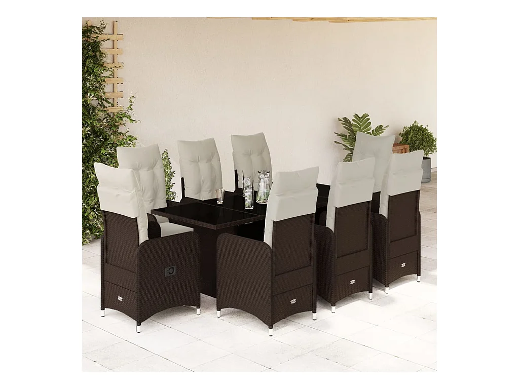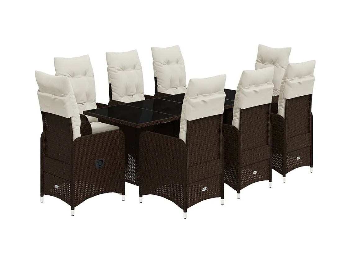 9 pcs conjunto bistrô de jardim c/ almofadões vime PE castanho