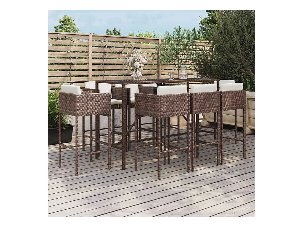 7 pcs conjunto de bar p/ jardim c/ almofadões vime PE castanho
