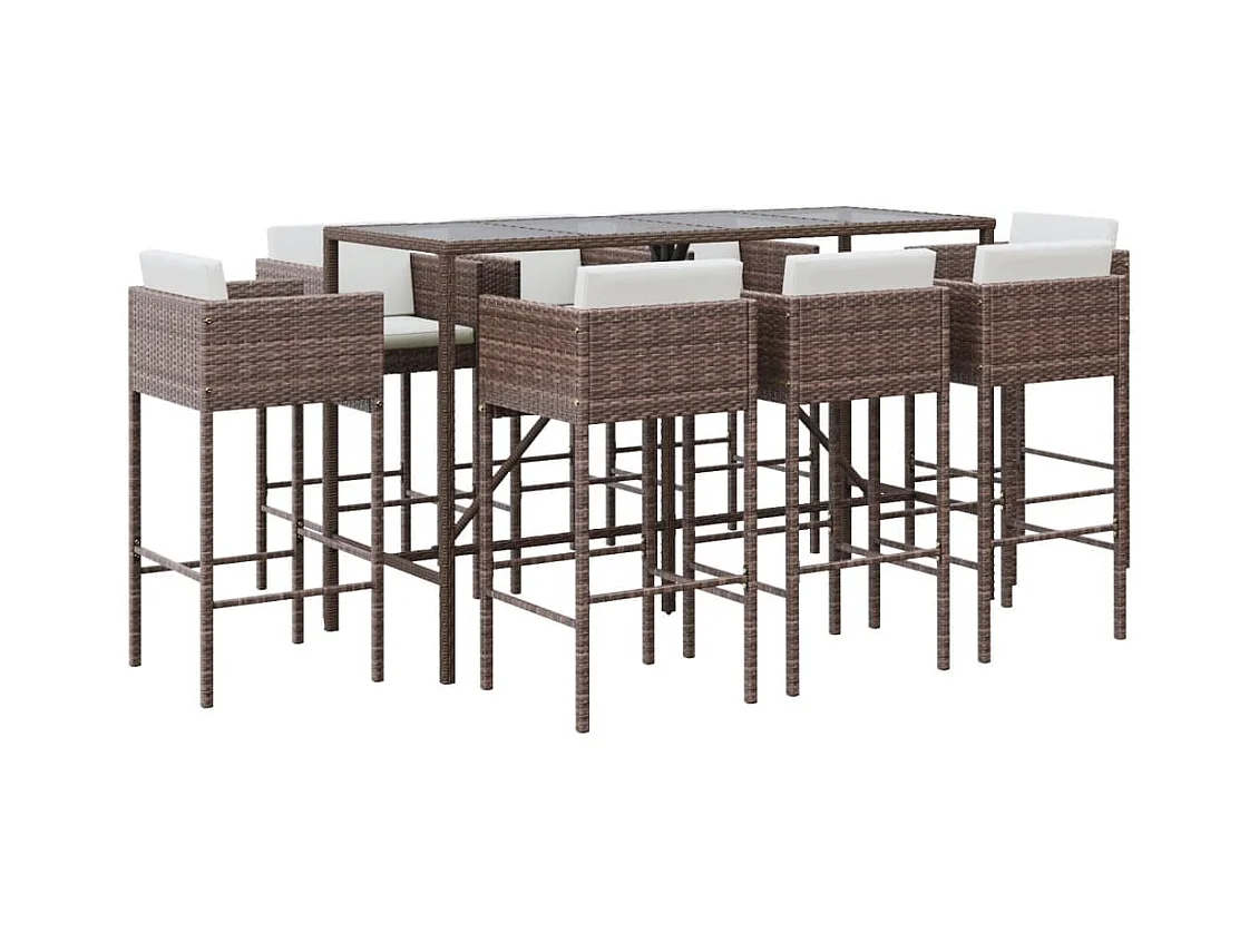 9 pcs conjunto de bar p/ jardim c/ almofadões vime PE castanho