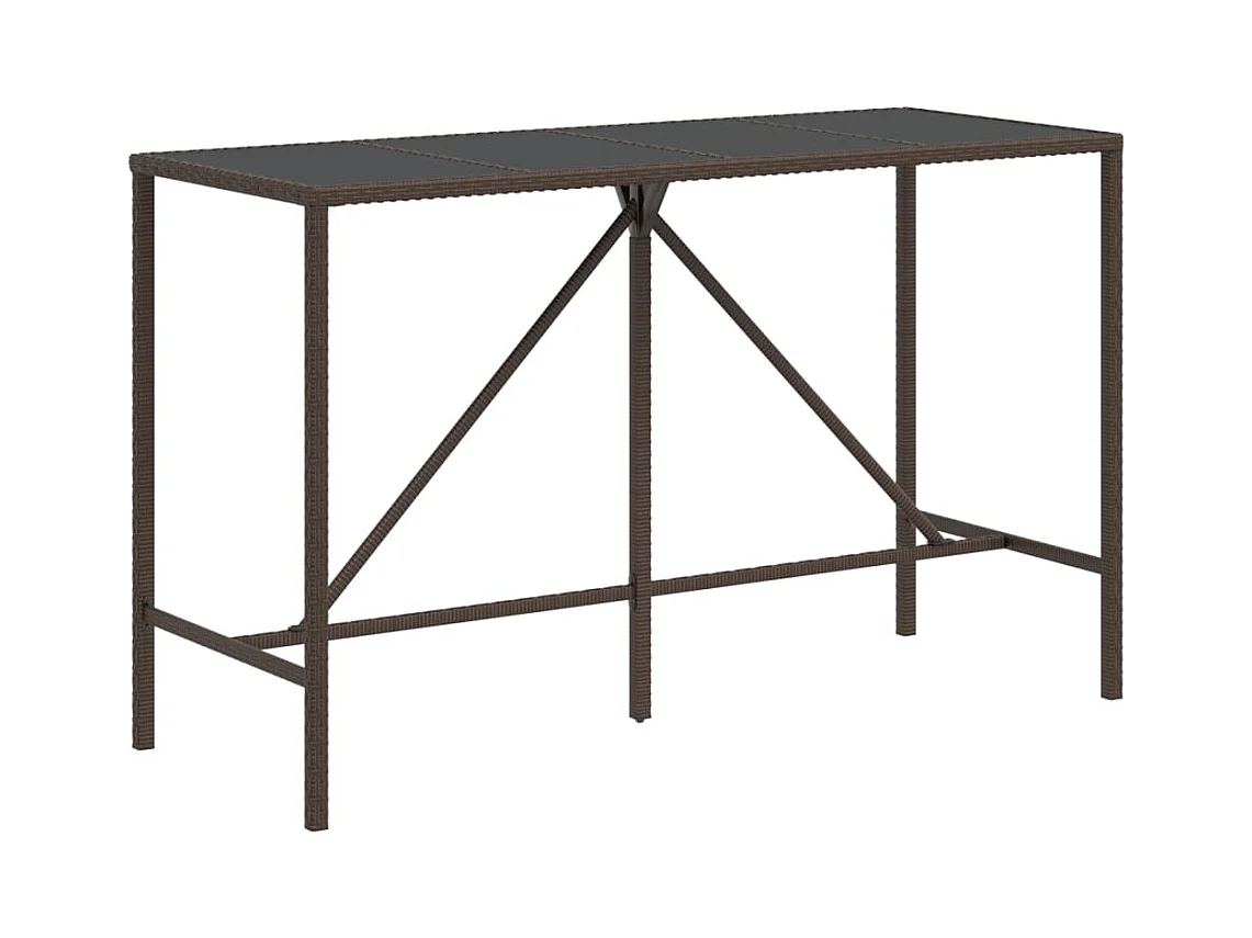 Mesa de bar com tampo de vidro 145x80x110 cm vime PE castanho