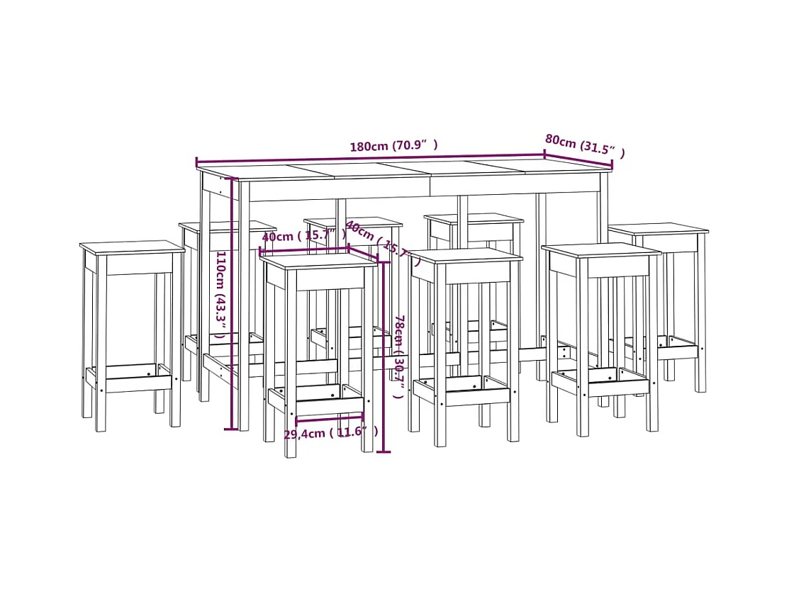 Mesa de bar 100x50x110 cm madeira de pinho maciça branco