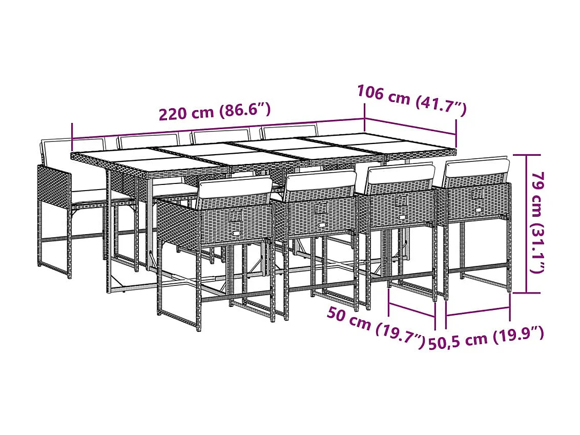 9 pcs conjunto de jantar p/ jardim c/ almofadões cinzento claro