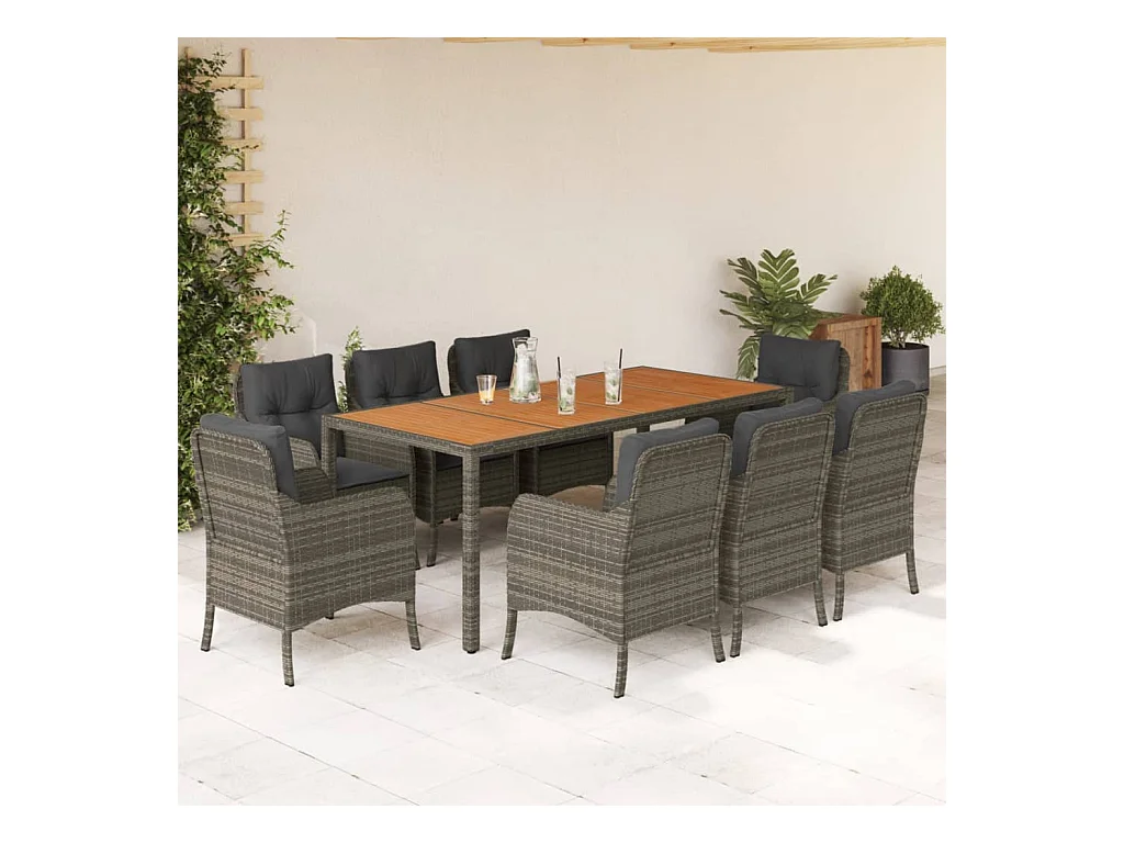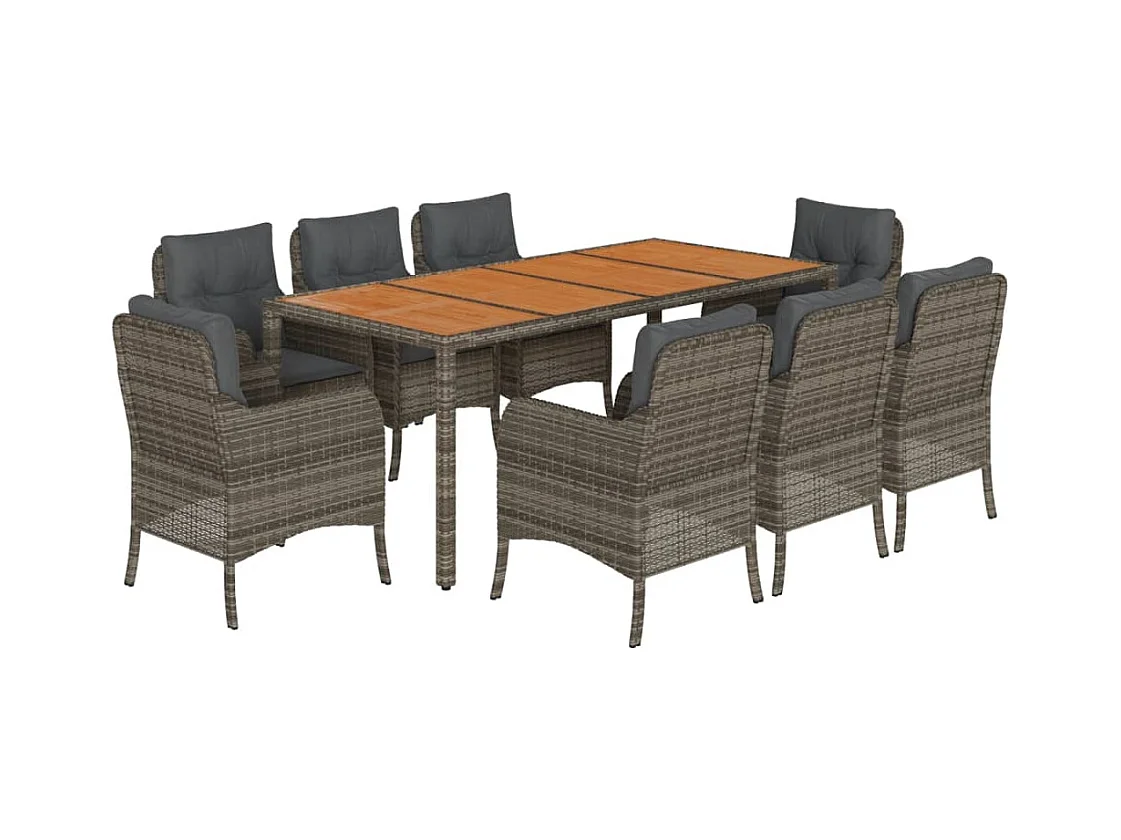 9 pcs conjunto de jantar p/ jardim c/ almofadões vime PE cinza