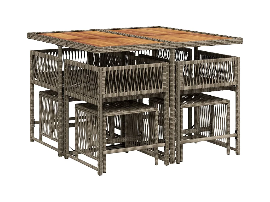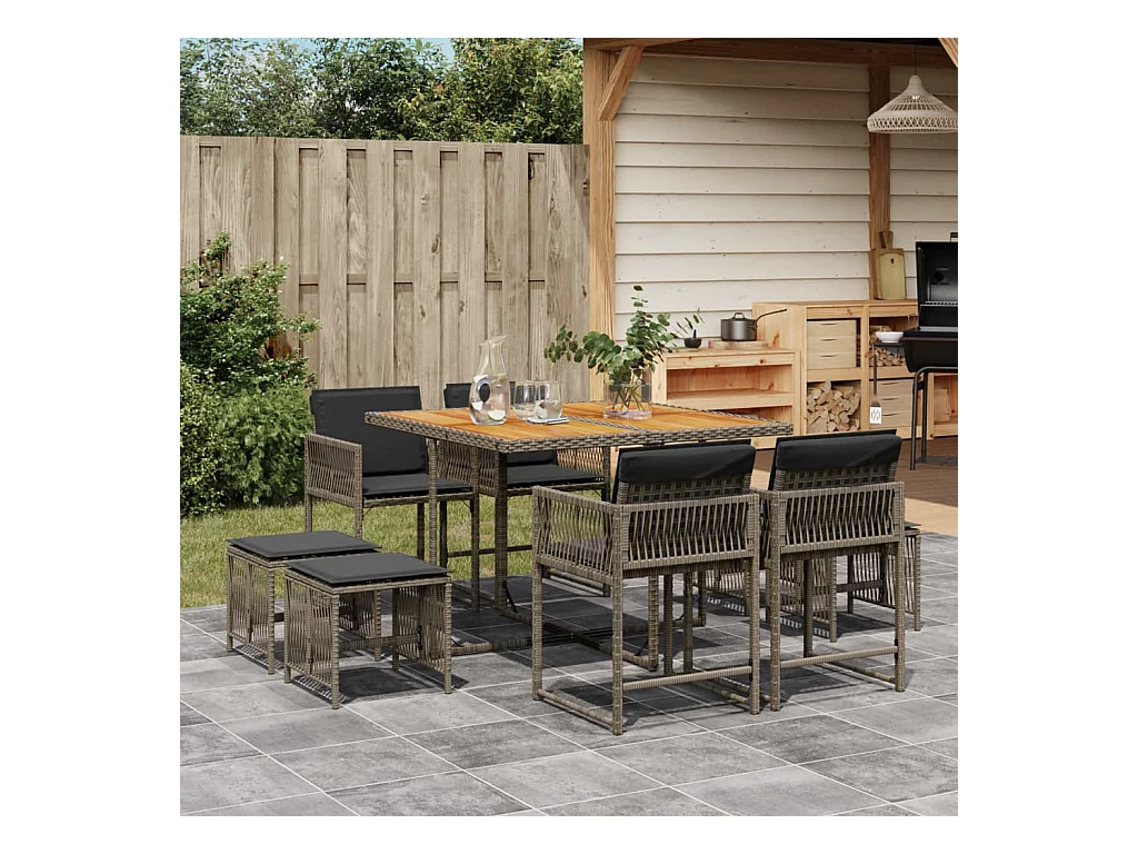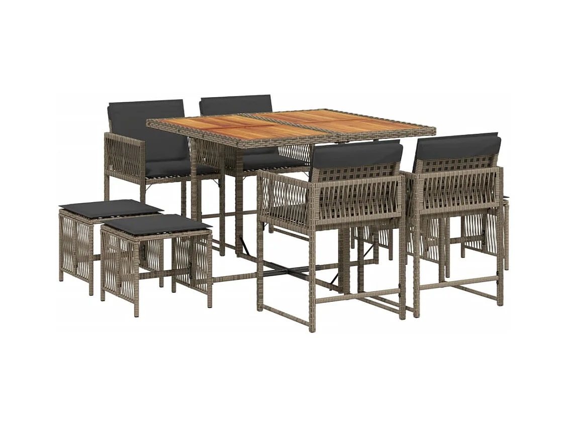 9 pcs conjunto de jantar p/ jardim c/ almofadões vime PE cinza PT244144