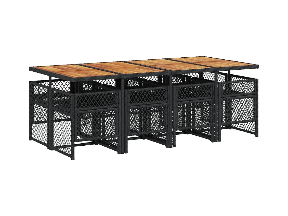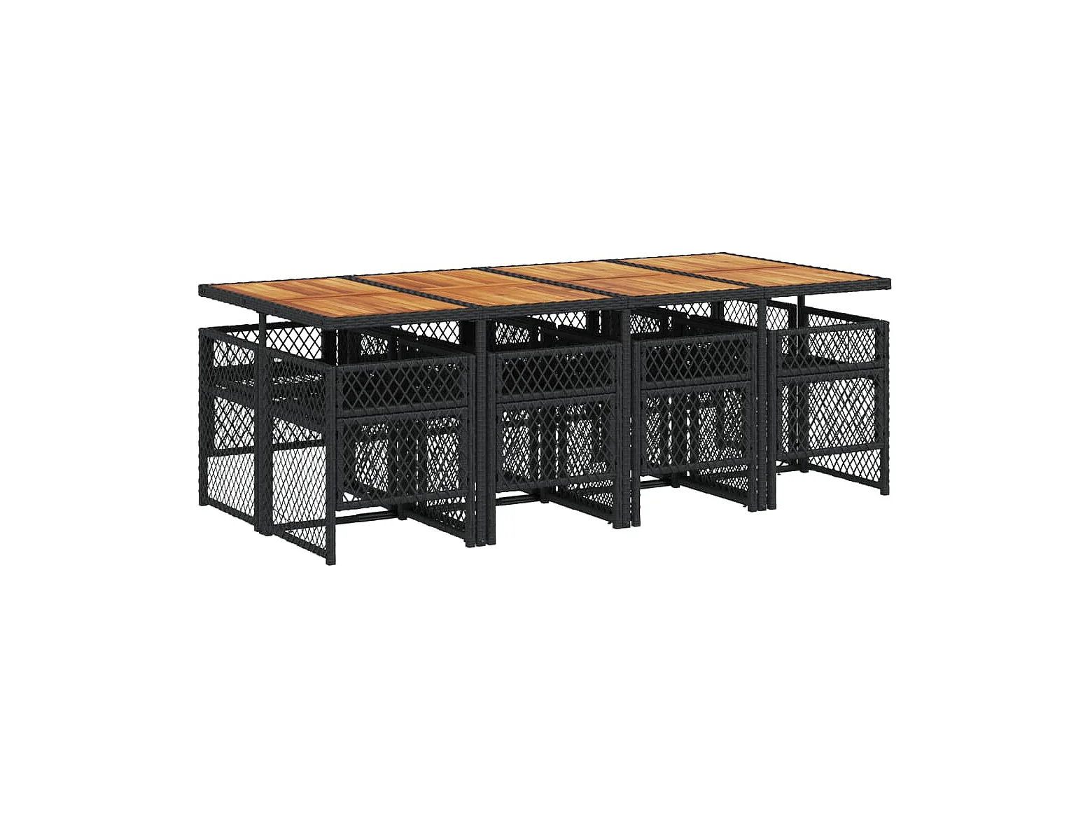 9 pcs conjunto de jantar p/ jardim c/ almofadões vime PE preto