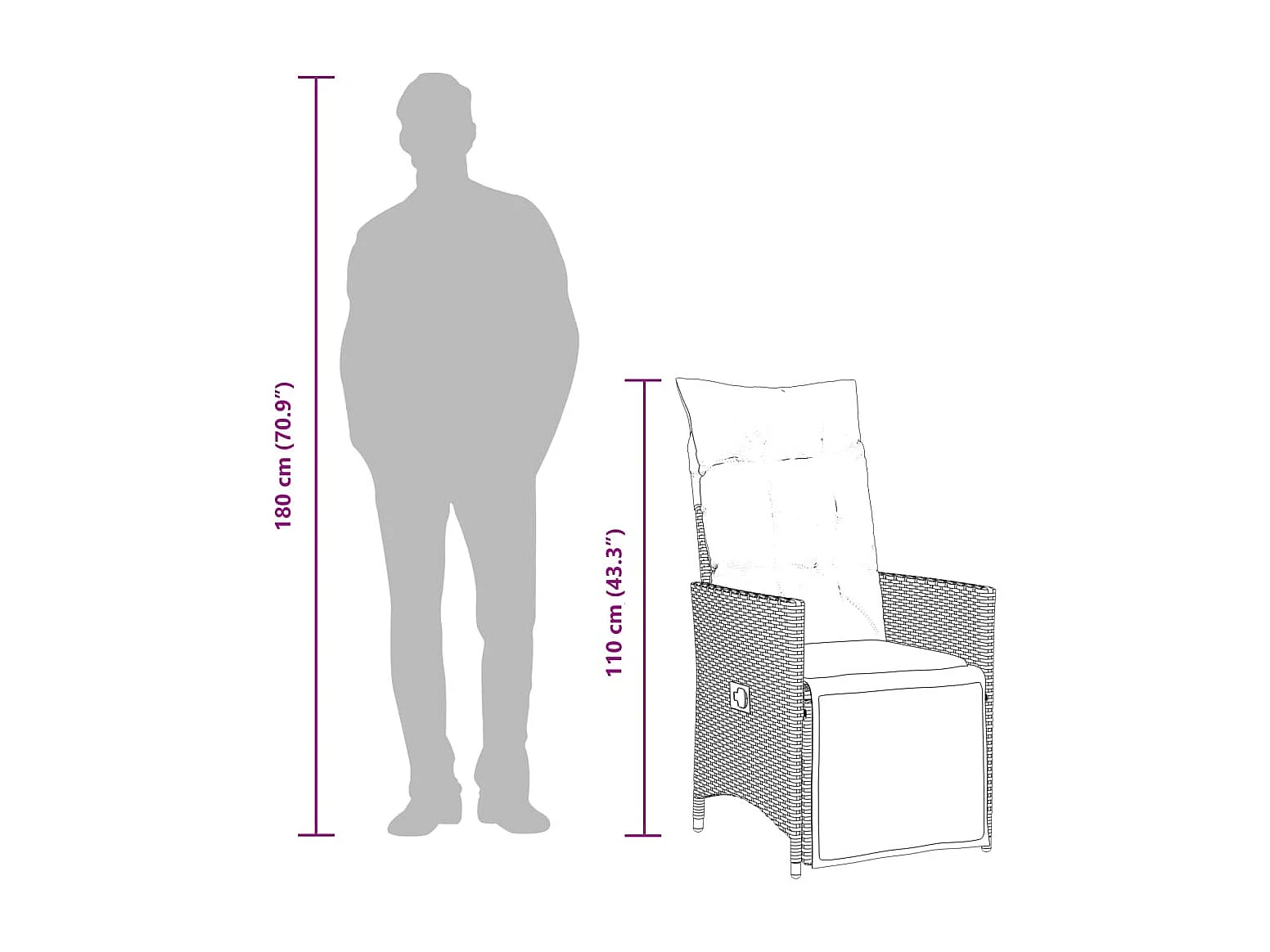 9 pcs conjunto de jantar p/ jardim c/ almofadões vime PE preto