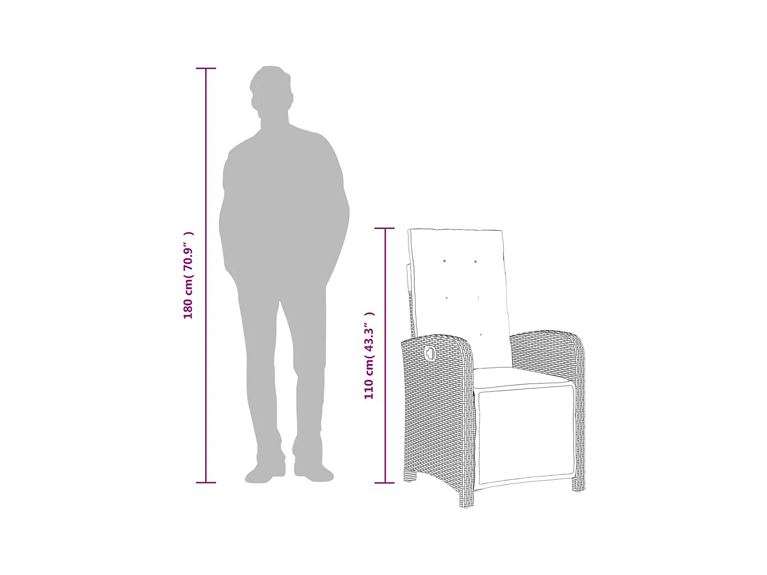7 pcs conjunto de jantar p/ jardim c/ almofadões vime PE preto