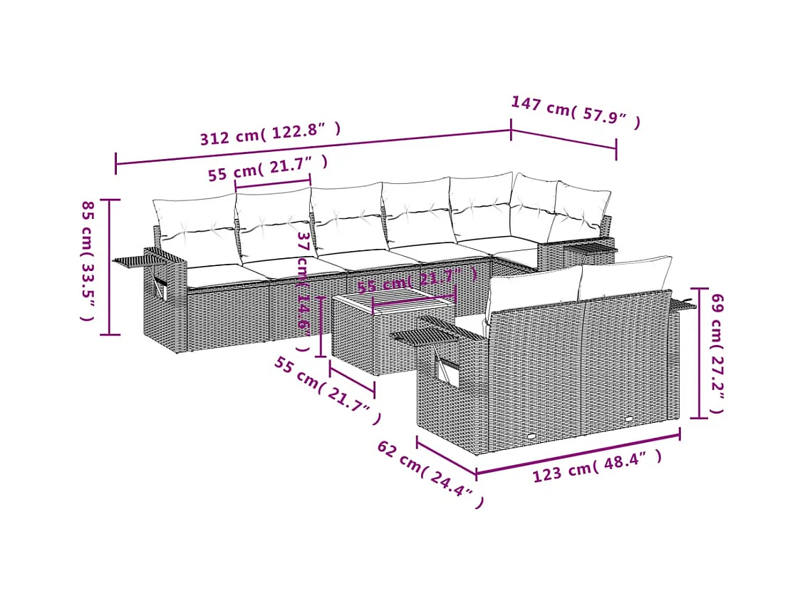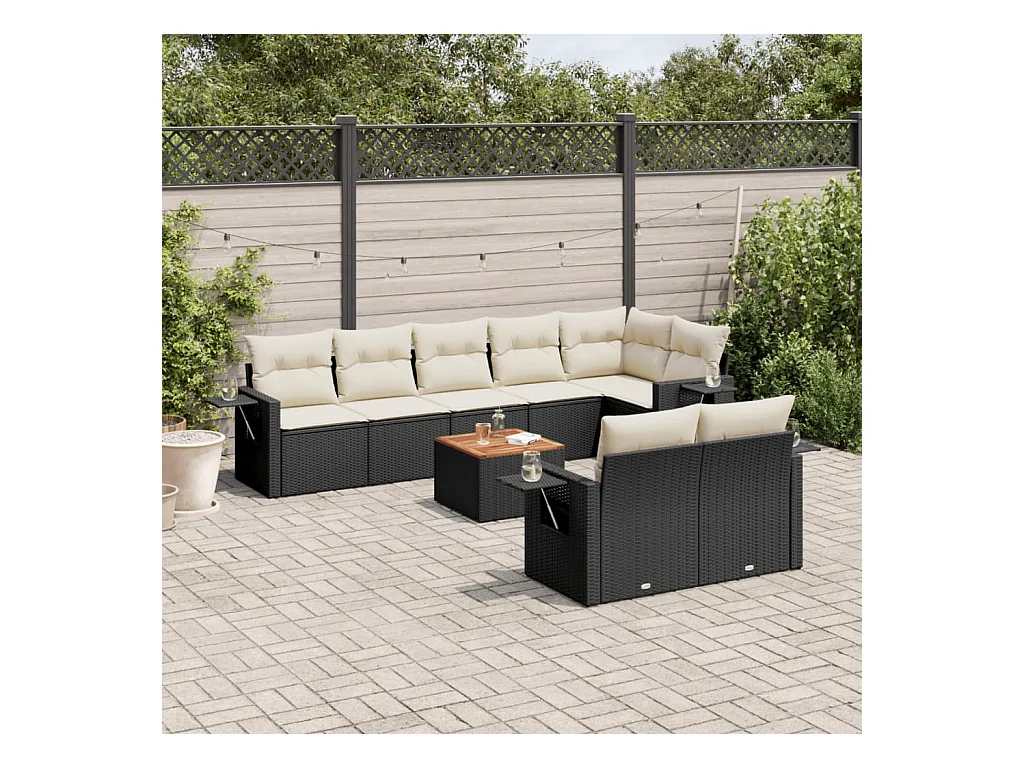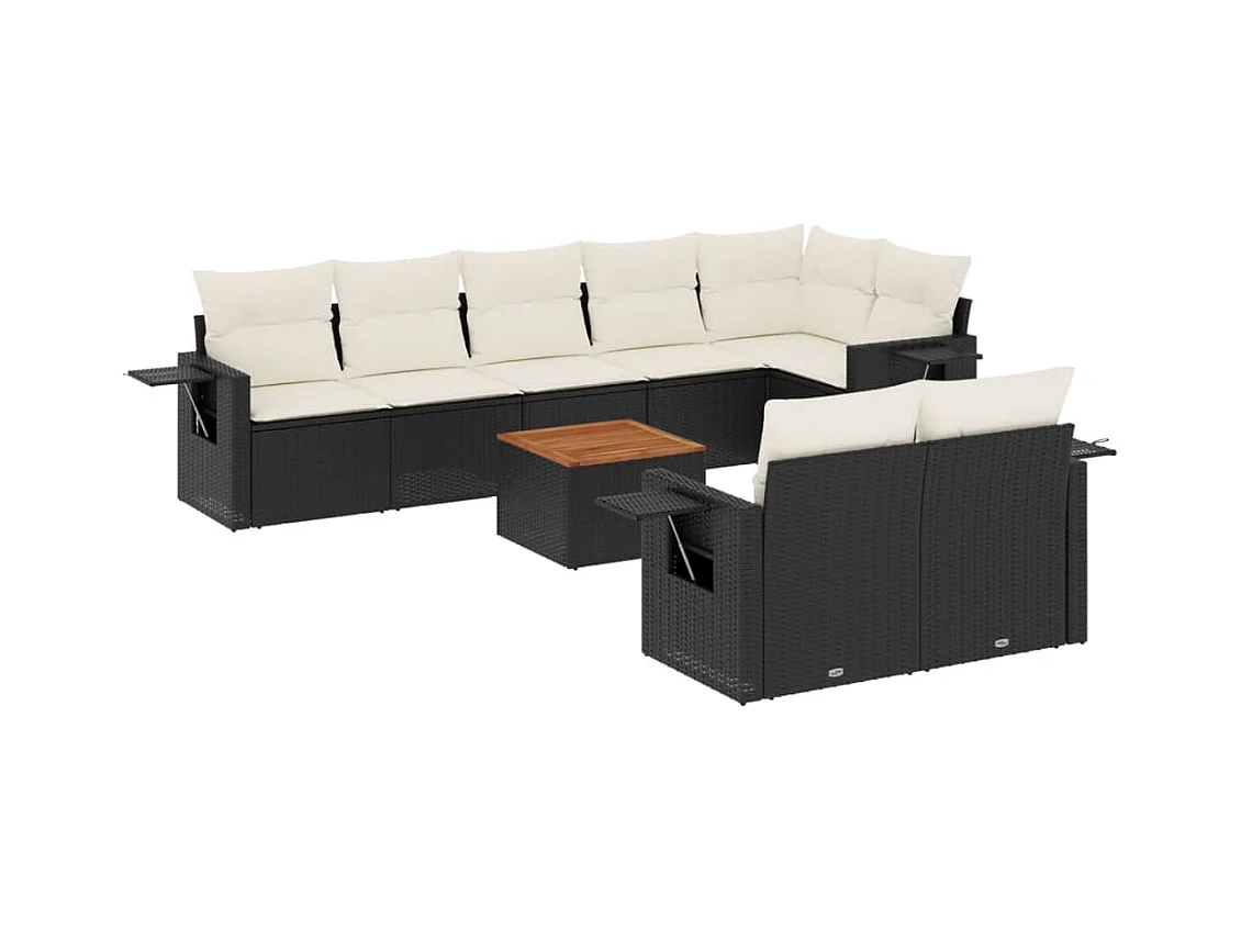 Móveis de jardim 10 unidades com almofadas de resina tecida preta
