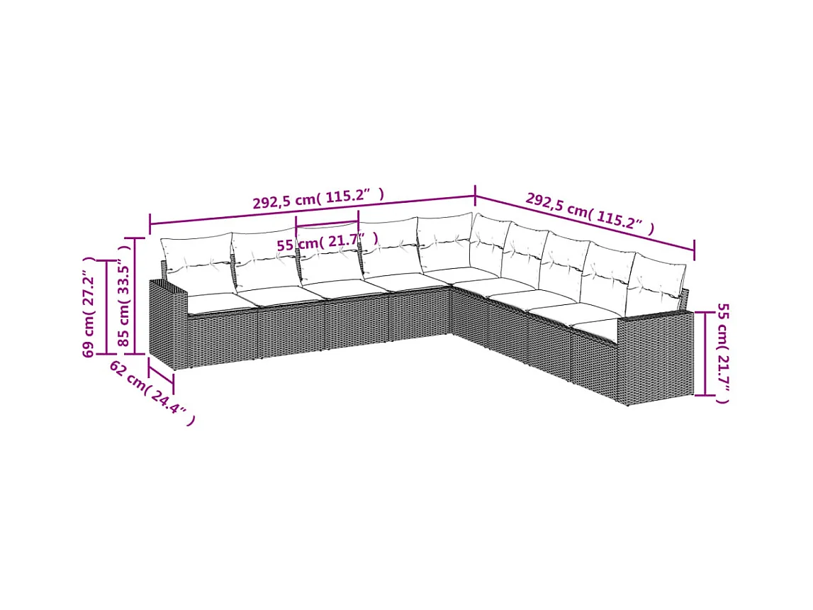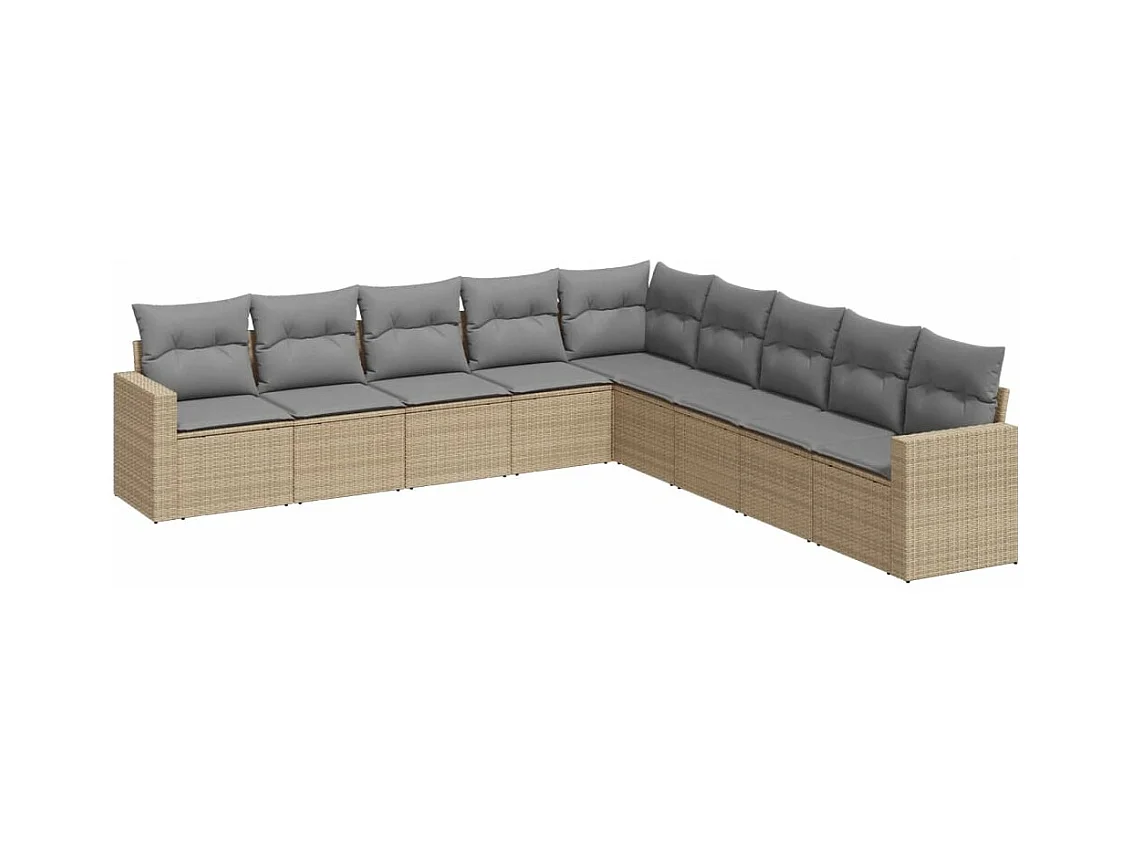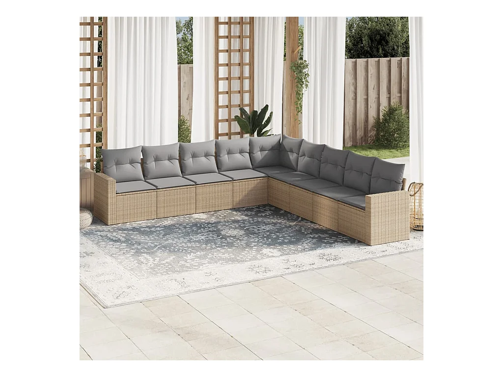 Móveis de jardim com almofadas 9 unidades de resina tecida bege