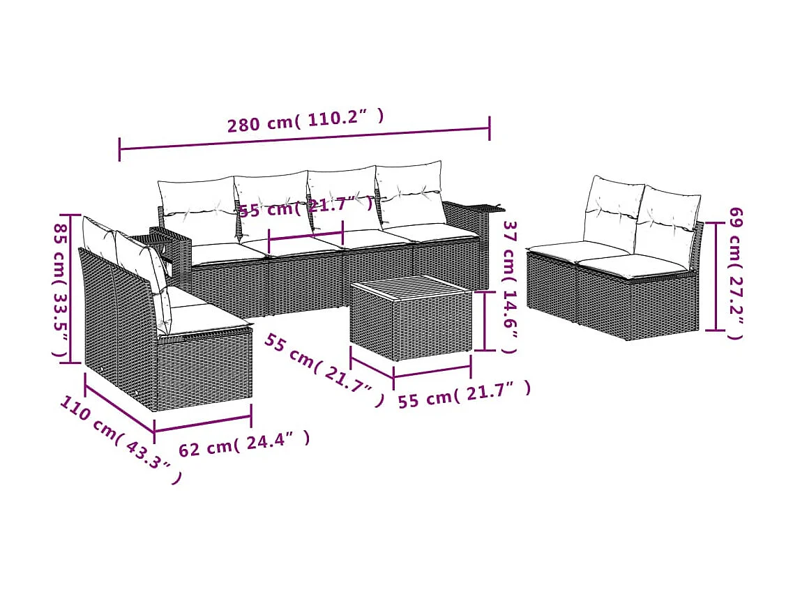 Móveis de jardim com almofadas 9 unidades de resina tecida bege