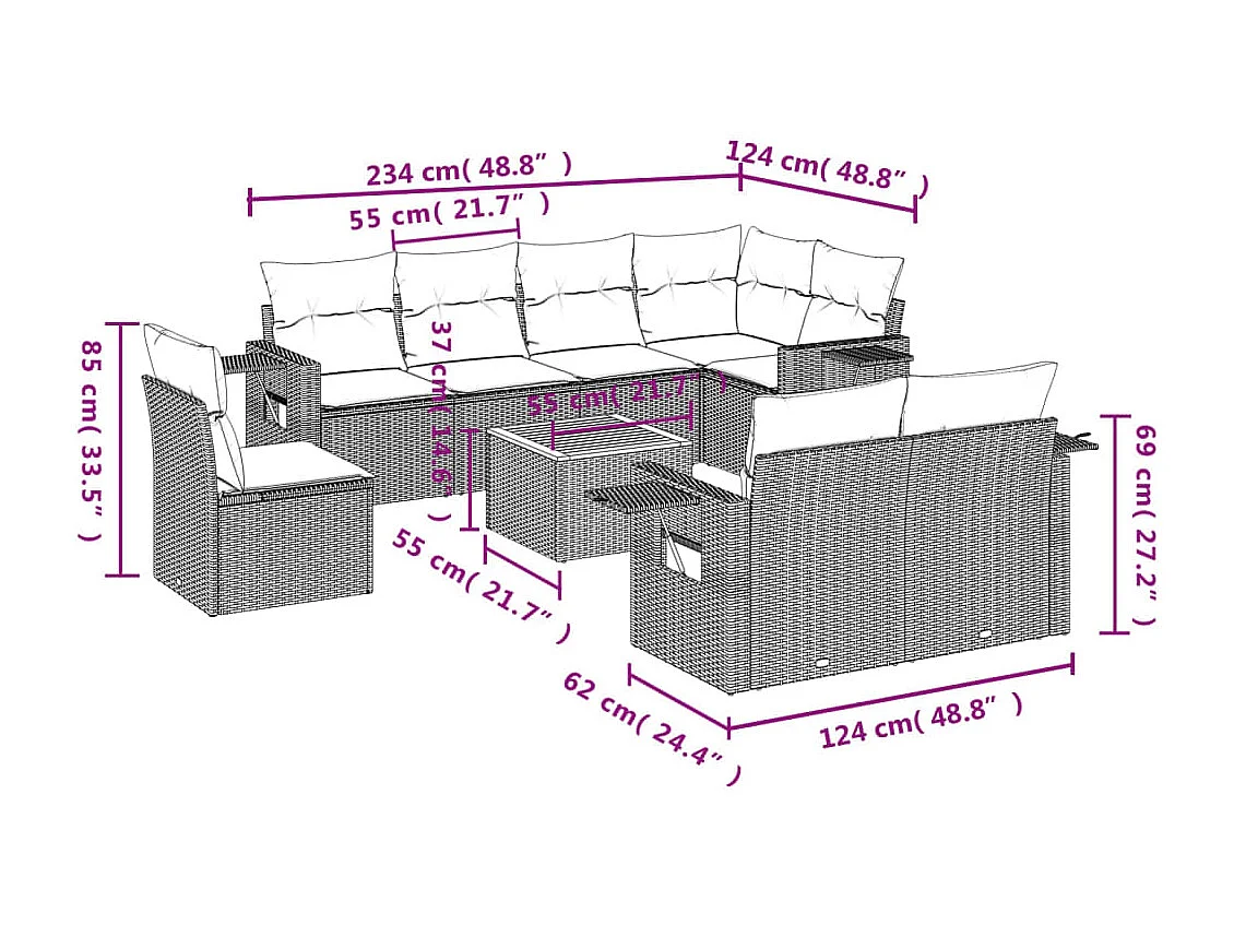Móveis de jardim com almofadas 9 unidades de resina tecida bege