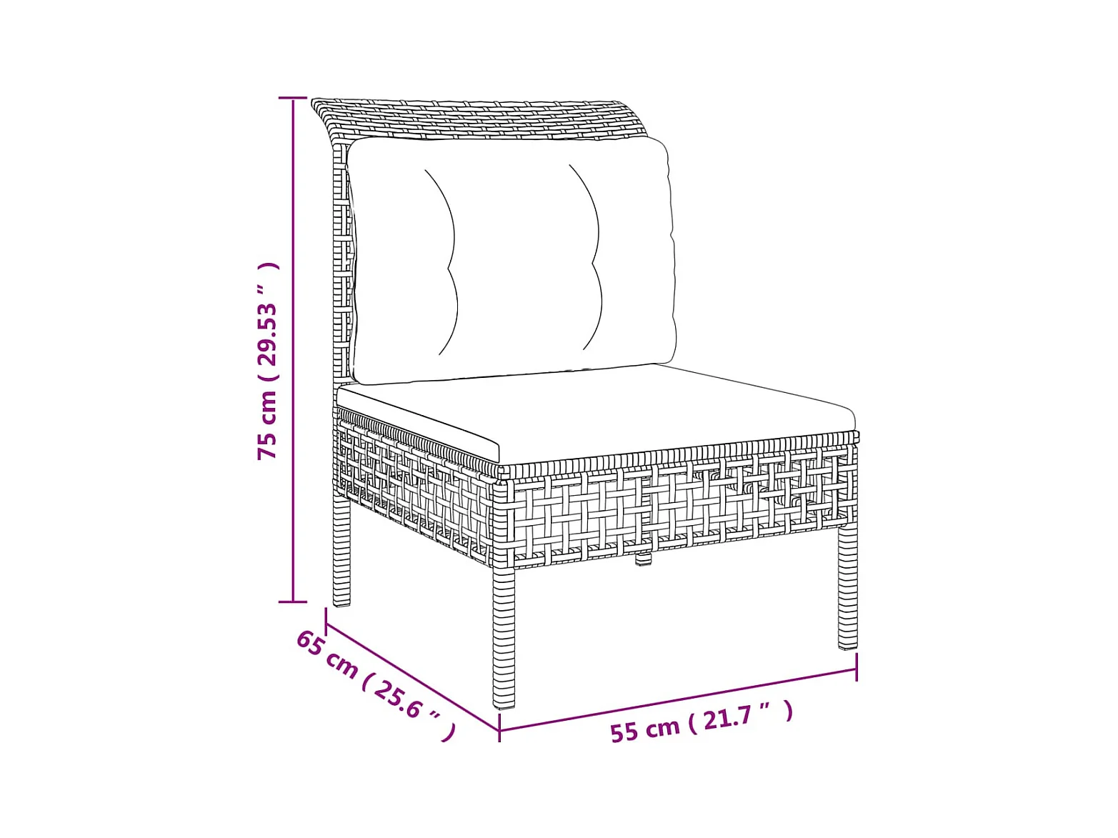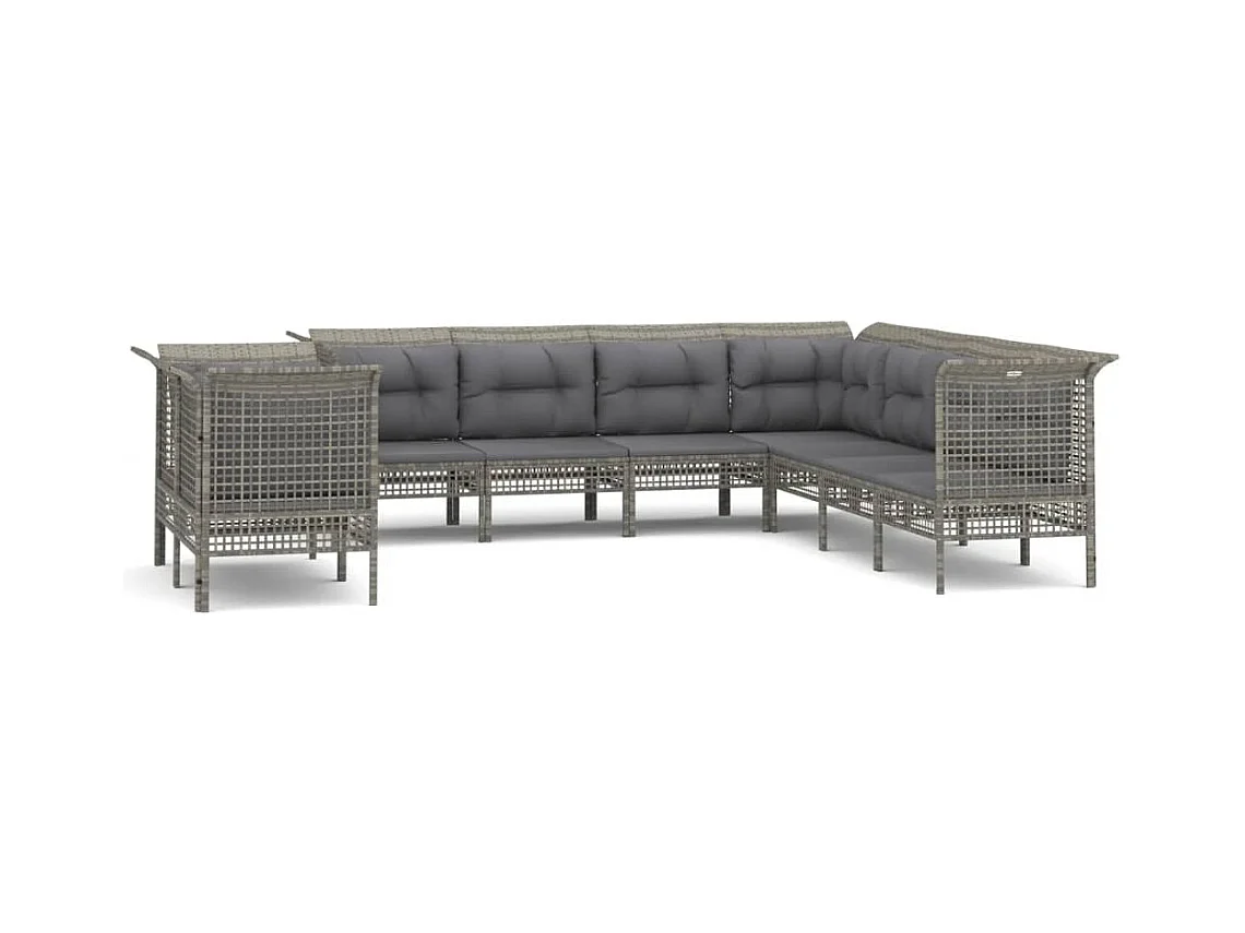 9 pcs conjunto lounge de jardim c/ almofadões vime PE cinzento