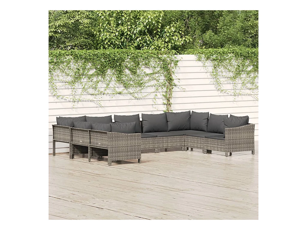 9 pcs conjunto lounge de jardim c/ almofadões vime PE cinzento